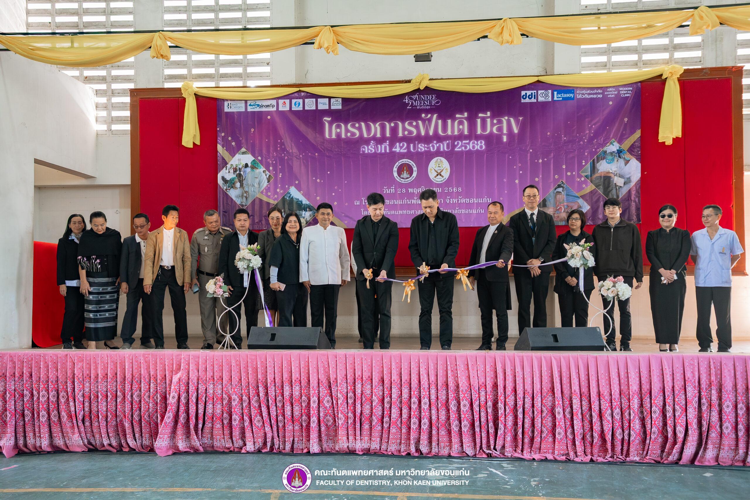 กิจกรรม “ฟันดี มีสุข ครั้งที่ 42” นับเป็นหนึ่งในโครงการที่สะท้อนเจตนารมณ์ของคณะทันตแพทยศาสตร์ มหาวิทยาลัยขอนแก่น ในการยกระดับสุขภาพช่องปากของประชาชนอย่างยั่งยืน และเสริมสร้างความร่วมมือระหว่างสถาบันการศึกษา ชุมชน และหน่วยงานท้องถิ่นให้แข็งแกร่งยิ่งขึ้น