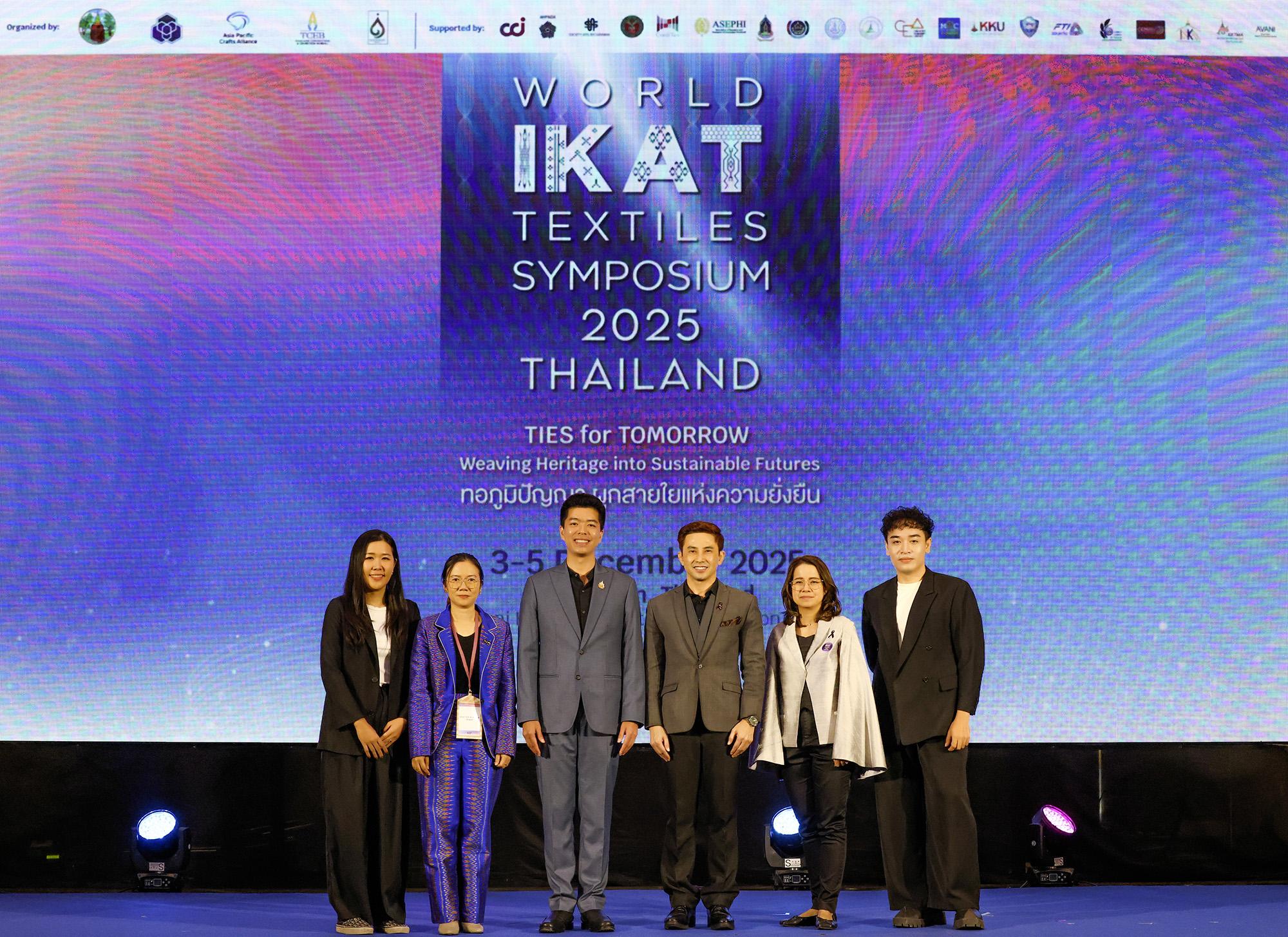 งาน World Ikat Textiles Symposium 2025 จัดขึ้น ณ โรงแรมอวานี ขอนแก่น โฮเทล แอนด์ คอนเวนชั่น เซ็นเตอร์ โดยมีนางสาวซาบีดา ไทยเศรษฐ์ รัฐมนตรีว่าการกระทรวงวัฒนธรรม เป็นประธานเปิดงาน พร้อมด้วยนายยุทธพร พิรุณสาร รองผู้ว่าราชการจังหวัดขอนแก่น หน่วยงานราชการ ภาคเอกชน และองค์การมหาชนเข้าร่วม ภายใต้แนวคิด “TIES for TOMORROW: Weaving Heritage into Sustainable Futures – ทอภูมิปัญญา ผูกสายใยแห่งความยั่งยืน” ซึ่งเป็นความร่วมมือระหว่างสมาคมการค้าส่งเสริมหัตถกรรมไทย สำนักงานส่งเสริมการจัดประชุมและนิทรรศการ และจังหวัดขอนแก่น โดยมีคณะสถาปัตยกรรมศาสตร์ มหาวิทยาลัยขอนแก่น ร่วมดำเนินงานในฐานะเจ้าภาพร่วมตั้งแต่เริ่มกระบวนการจัดงาน นำโดย รศ.ดร.กฤตภัทร ถาปาลบุตร คณบดี, ดร.ชนัษฎา จุลลัษเฐียร ผู้ช่วยคณบดีฝ่ายบริการวิชาการและศิลปวัฒนธรรม และ อ.ดร.อรรคพล ล่าม่วง ผู้ช่วยคณบดีฝ่ายพัฒนานักศึกษาและสื่อสารองค์กร