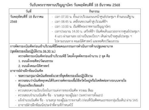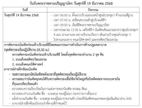 รอบเช้า สำหรับบัณฑิตที่เข้ารับพระราชทานปริญญาบัตรวันที่ 18 ธันวาคม 2568