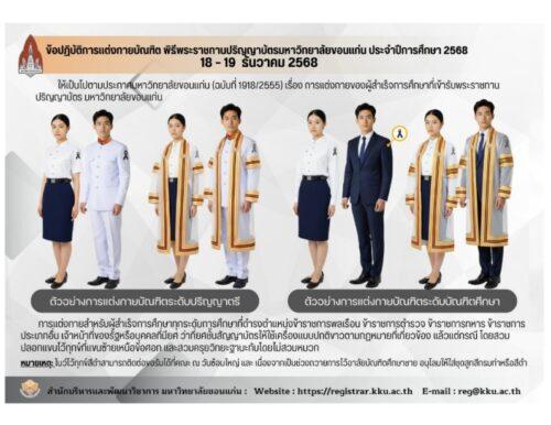 มหาวิทยาลัยขอนแก่น แจ้งกำหนดการฝึกซ้อมและพิธีพระราชทานปริญญาบัตร ประจำปี พ.ศ. 2568 ซึ่งจะจัดขึ้นระหว่างวันที่ 18–19 ธันวาคม 2568 ณ ศูนย์ประชุมกาญจนาภิเษก มหาวิทยาลัยขอนแก่น โดยบัณฑิตทุกคนต้องเข้ารายงานตัวและเข้าร่วมการฝึกซ้อมตามวันเวลาที่มหาวิทยาลัยกำหนด หากไม่เข้าร่วมตามระเบียบจะไม่มีสิทธิ์เข้ารับพระราชทานปริญญาบัตร