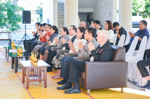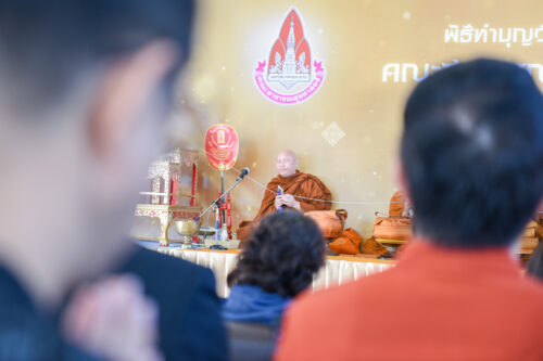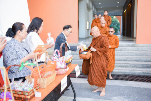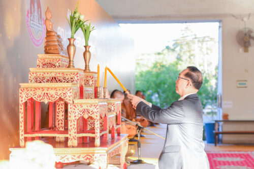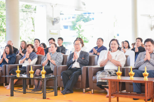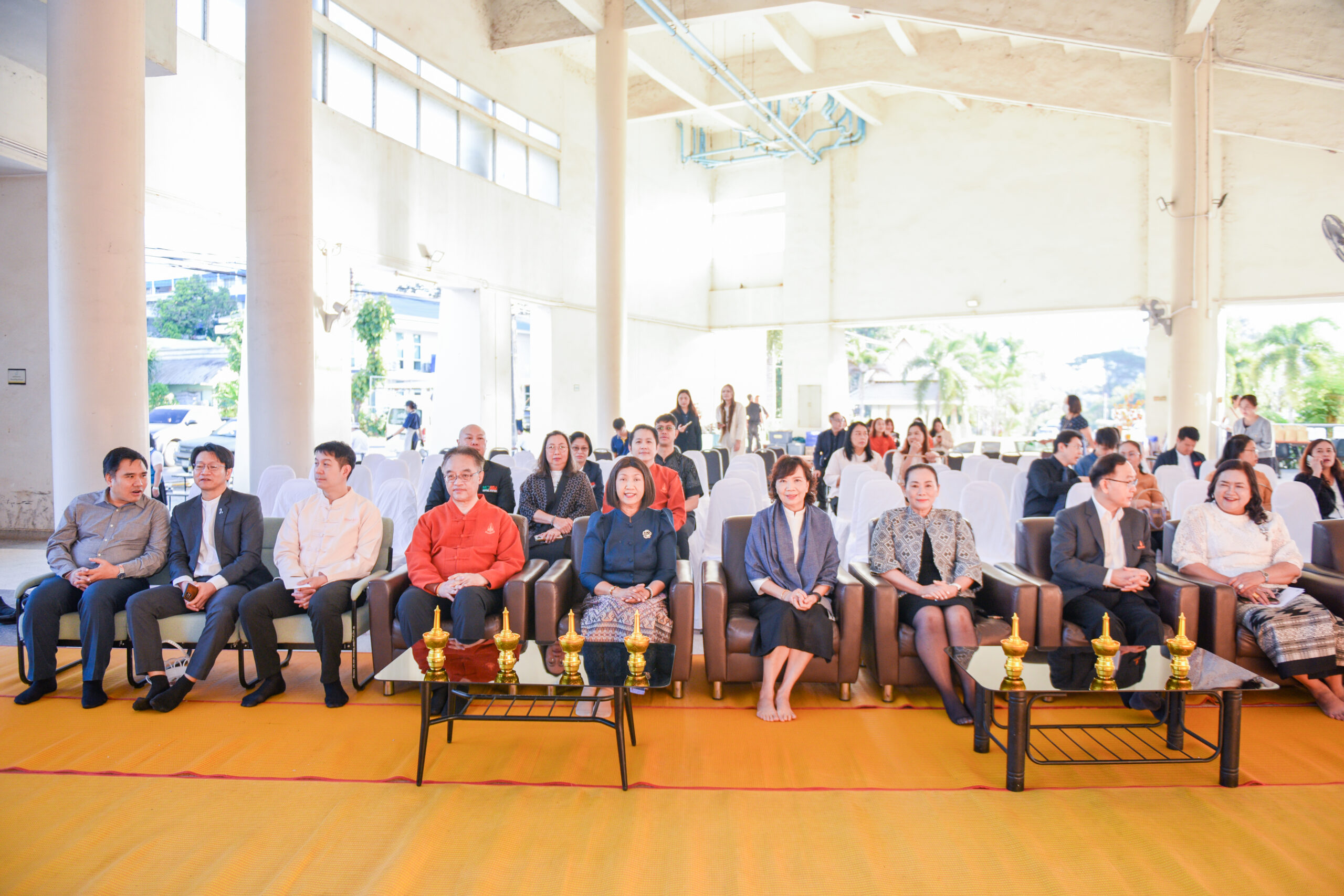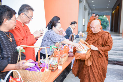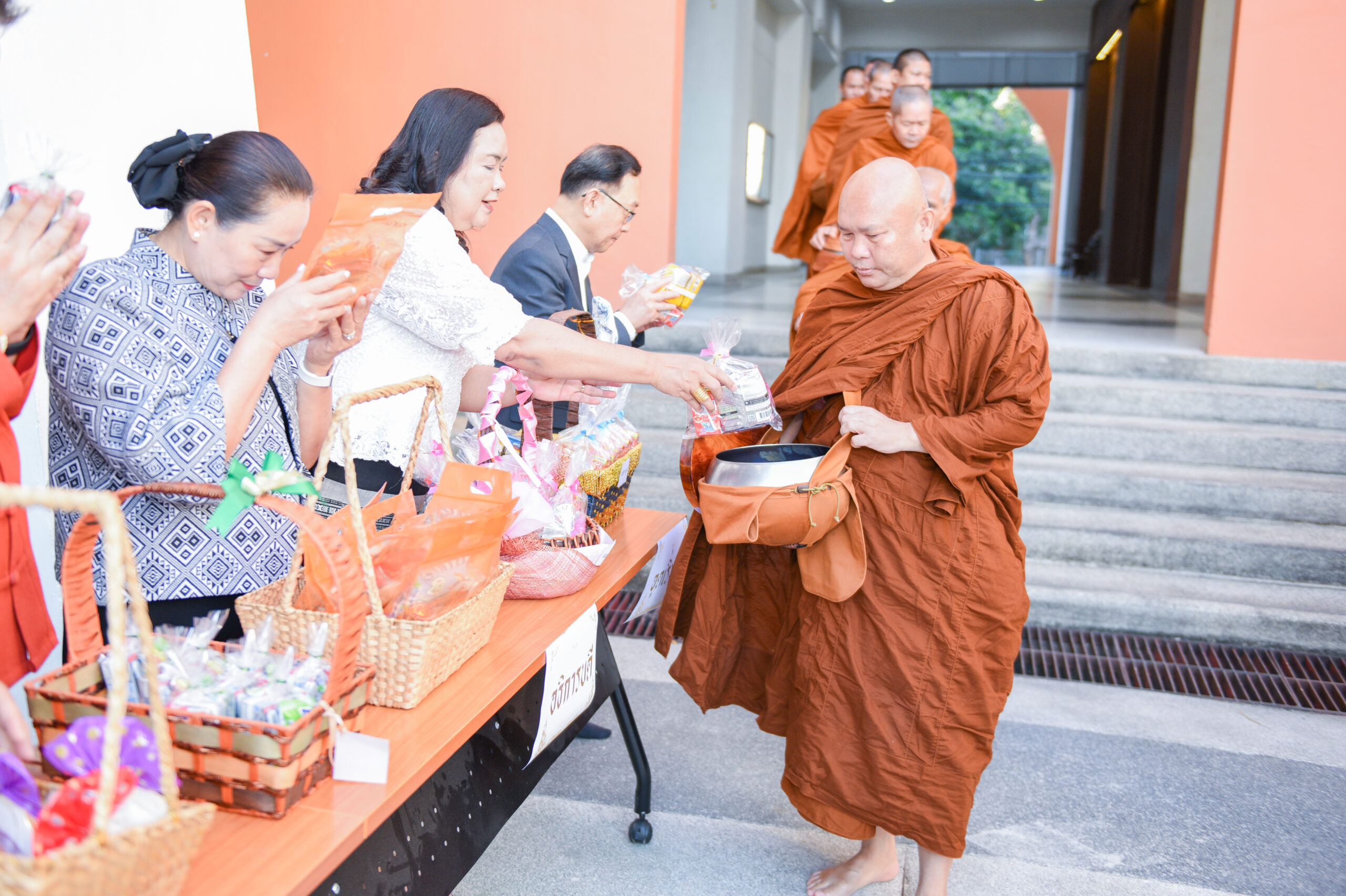 ภายในงานมีทำบุญตักบาตรพระสงฆ์ 9 รูป เจริญพระพุทธมนต์ และถวายภัตตาหารเช้า เครื่องไทยธรรม  โดยได้รับความเมตตาจาก หลวงปู่ยูวิน ภูริปัญโญ และพระภิกษุสงฆ์ จากวัดป่าสว่างพร บ้านหนองตะนา ต.เขาสวนกวาง อ.เขาสวนกวาง จ.ขอนแก่น ออกรับบิณฑบาต และเจริญพระพุทธมนต์ให้ศีลให้พร เพื่อความเป็นสิริมงคลแก่ผู้ร่วมพิธี