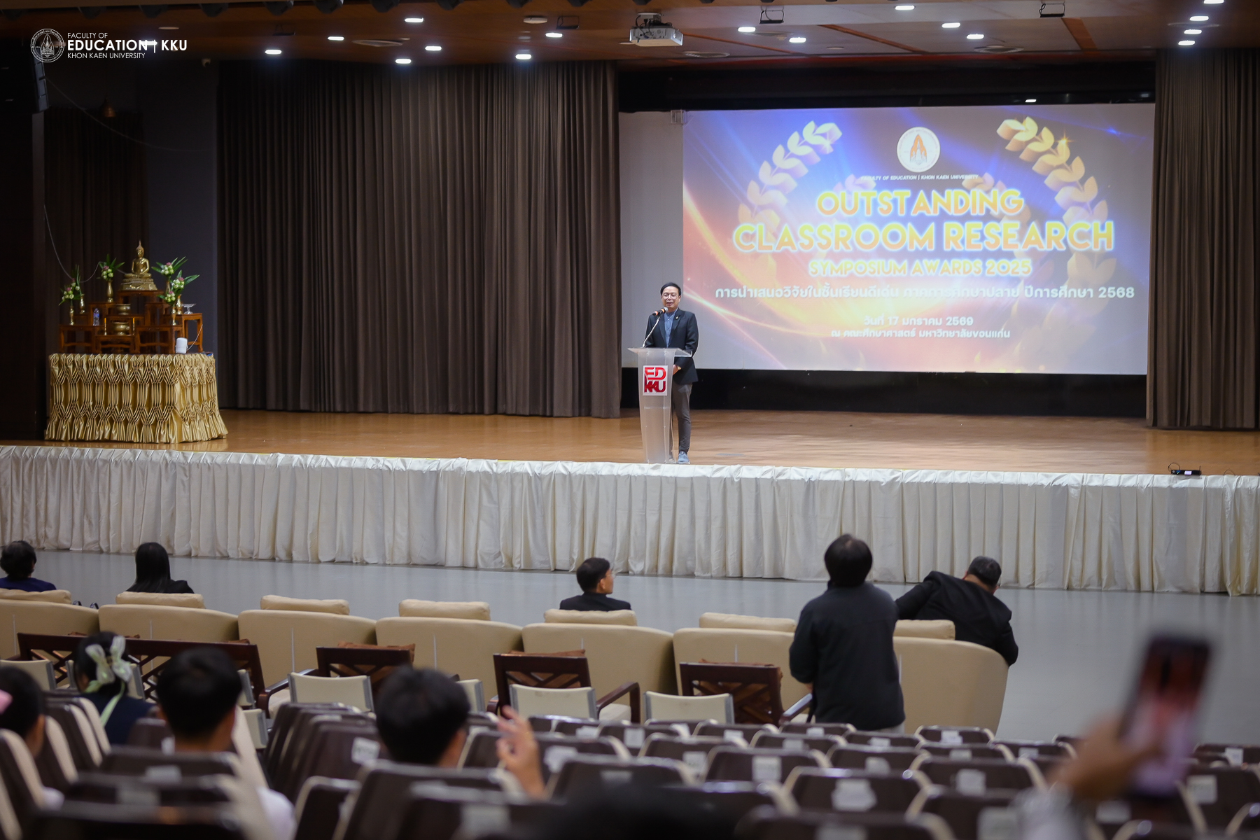 17 มกราคม 2569 – คณะศึกษาศาสตร์ มหาวิทยาลัยขอนแก่น จัดกิจกรรม “การนำเสนอผลงานวิจัยในชั้นเรียน ภาคการศึกษาปลาย ปีการศึกษา 2568” เพื่อเป็นเวทีวิชาการให้นักศึกษาฝึกปฏิบัติการสอนได้นำเสนอแนวทางการแก้ปัญหาและพัฒนาการเรียนรู้ผ่านกระบวนการวิจัยอย่างเป็นระบบ พร้อมจัดพิธีมอบรางวัลและเกียรติบัตรเพื่อเชิดชูเกียรติให้แก่ผลงานวิจัยที่มีความโดดเด่น โดยมีคณะผู้บริหาร คณาจารย์ และนักศึกษาเข้าร่วมกิจกรรมอย่างพร้อมเพรียง เพื่อร่วมกันขับเคลื่อนคุณภาพการจัดการศึกษาในระดับชั้นเรียน