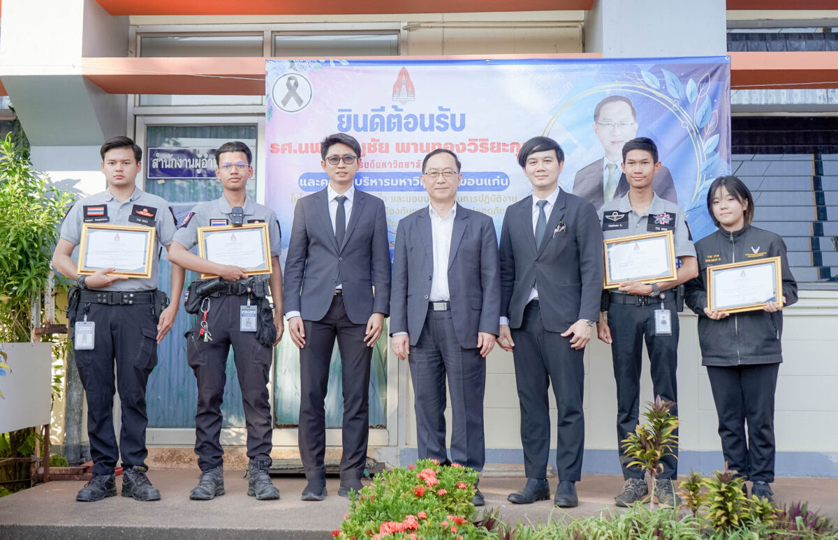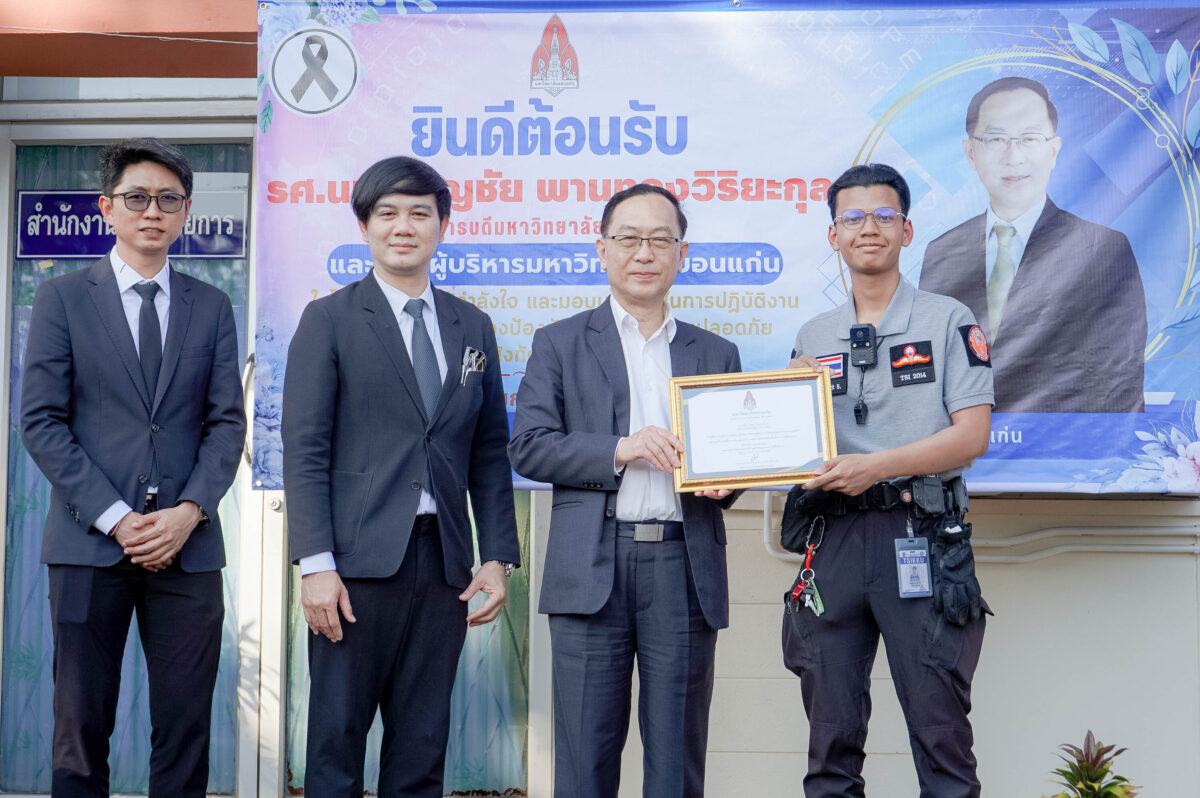 วันที่ 27 มกราคม 2569 รองศาสตราจารย์ นายแพทย์ชาญชัย พานทอง วิริยะกุล อธิการบดีมหาวิทยาลัยขอนแก่น พร้อมด้วยคณะผู้บริหารมหาวิทยาลัย ได้พบปะบุคลากรกองป้องกันและรักษาความปลอดภัย และงานบริการยานพาหนะ กองบริหารงานกลาง มหาวิทยาลัยขอนแก่น เพื่อมอบนโยบายในการปฏิบัติงาน พร้อมให้โอวาท ส่งความปรารถนาดี และเป็นขวัญกำลังใจแก่บุคลากรด้านการบริการยานพาหนะ และบุคลากรด้านการรักษาความปลอดภัย