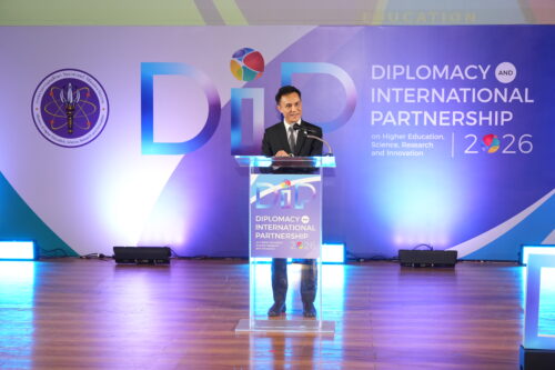 สำหรับโครงการ “Diplomacy and International Partnership Forum on Higher Education, Science, Research and Innovation 2026″เป็นการรวมตัวของผู้แทนจากสถานเอกอัครราชทูตทั้ง 32 ประเทศ ครอบคลุมทั้งกลุ่มยุโรป เอเชีย อาเซียน และภูมิภาคอื่นๆ ทั่วโลก โดยมีทั้งเอกอัครราชทูตและรองหัวหน้าคณะผู้แทนทางการทูตเข้าร่วมเป็นจำนวนมาก นอกจากนี้ยังมีผู้บริหารระดับรองอธิการบดีและผู้ช่วยอธิการบดีจากมหาวิทยาลัยชั้นนำ 15 แห่งทั่วประเทศ รวมถึงตัวแทนจากสถาบันวิจัยและหน่วยงานรัฐยุทธศาสตร์ 14 แห่ง อาทิ สำนักงานพัฒนาวิทยาศาสตร์และเทคโนโลยีแห่งชาติ (สวทช.) หน่วยบริหารและจัดการทุนด้านการพัฒนาระดับพื้นที่ (บพท.) และสำนักงานพัฒนาเทคโนโลยีอวกาศและภูมิสารสนเทศ (GISTDA) โดยมุ่งเน้นการบูรณาการองค์ความรู้ทางวิทยาศาสตร์ เทคโนโลยีและนวัตกรรมกับภูมิปัญญาท้องถิ่น