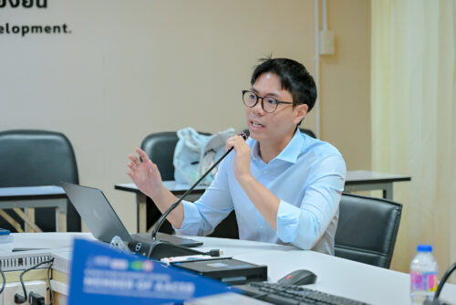 (นายตรีดนัย วิทยาเต็ม ผู้ได้รับทุนสนับสนุนจากกองทุน TED Fund นำเสนอผลการดำเนินโครงการฯ)