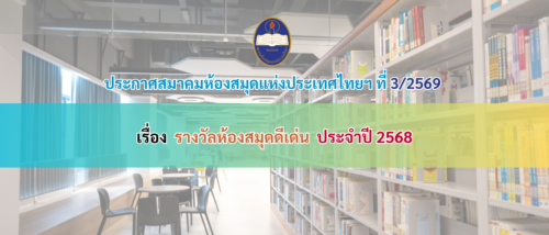 ได้รับการยกย่องให้เป็น “ห้องสมุดสถาบันอุดมศึกษาดีเด่น” ตามประกาศสมาคมห้องสมุดแห่งประเทศไทยฯ ที่ 3/2569 เรื่อง รางวัลห้องสมุดดีเด่น ประจำปี 2568 ประกาศ ณ วันที่ 4 กุมภาพันธ์ 2569 (https://www.tla.or.th/index.php/th/news-and-events/announcement/509-3-2569)