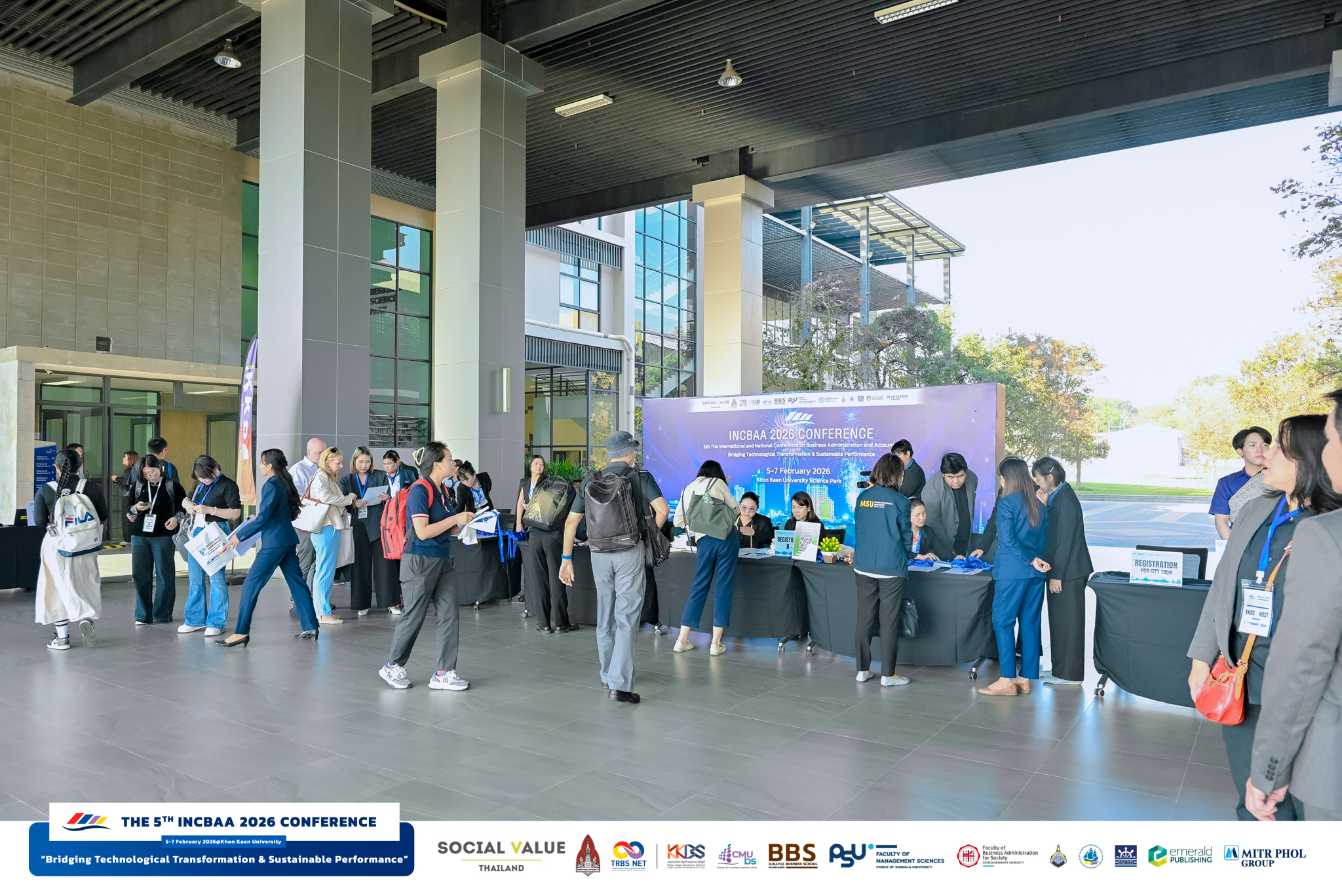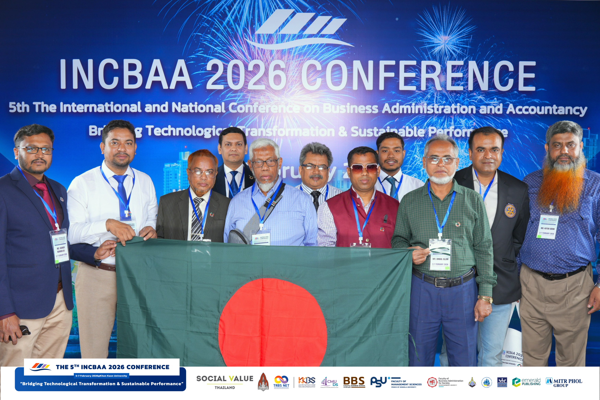 และ ในครั้งที่ 5 ปี 2569 นี้ คณะบริหารธุรกิจและการบัญชี มหาวิทยาลัยขอนแก่น ได้รับเกียรติให้เป็นเจ้าภาพจัดประชุมวิชาการฯ อีกครั้งในนามเครือข่าย TRBS-NET โดยการประชุมในครั้งนี้ มีผู้ลงทะเบียนเข้าร่วมงานทั้งสิ้น 238 คน จากหลากหลายประเทศทั่วโลก อาทิ ประเทศไทย บังกลาเทศ อินโดนีเซีย มาเลเซีย ไต้หวัน ปากีสถาน ฟิลิปปินส์ จีน ญี่ปุ่น จอร์แดน อินเดีย เมียนมา สหรัฐอเมริกา และประเทศอื่น ๆ ซึ่งสะท้อนบทบาทของการประชุม INCBAA ในฐานะเวทีวิชาการระดับนานาชาติที่เชื่อมโยงเครือข่ายนักวิชาการ นักวิจัย และนักศึกษาจากหลายภูมิภาค โดยในการประชุมครั้งนี้คณะฯ ยังได้รับการสนับสนุนจากเครือข่ายพันธมิตรและมหาวิทยาลัยในเครือข่ายด้านบริหารธุรกิจทั่วประเทศ ให้การสนับสนุนการจัดประชุมวิชาการในรูปแบบ Carbon Neutral Conference เพื่อส่งเสริมแนวคิดการจัดงานที่คำนึงถึงผลกระทบต่อสิ่งแวดล้อม รวมทั้งพัฒนาองค์ความรู้ด้านบริหารธุรกิจเพื่อความยั่งยืน (Sustainability)