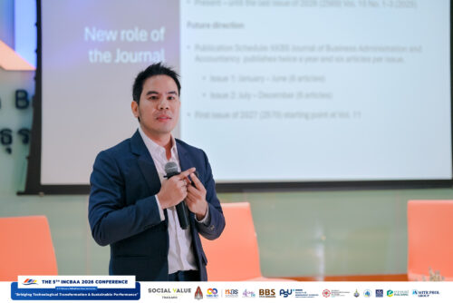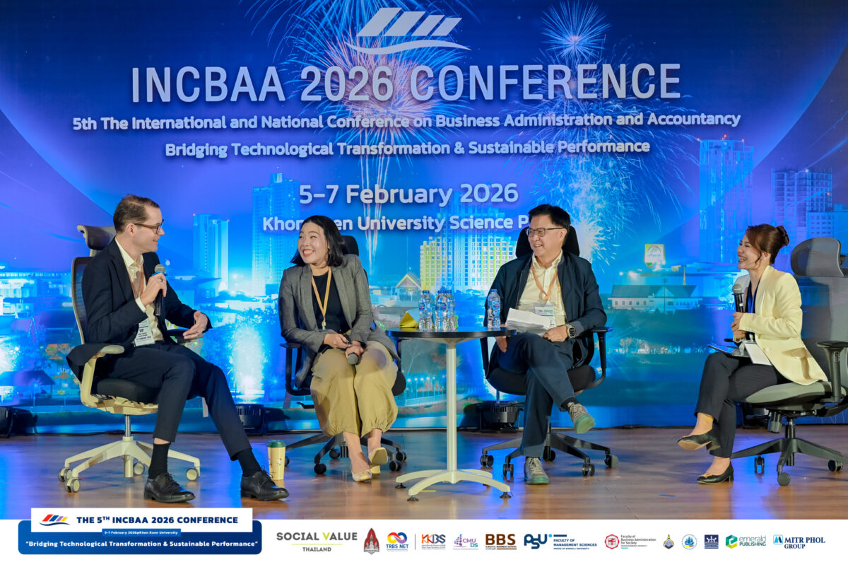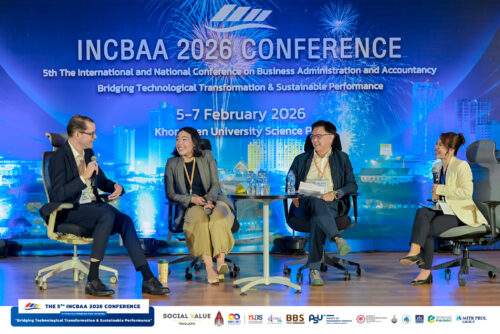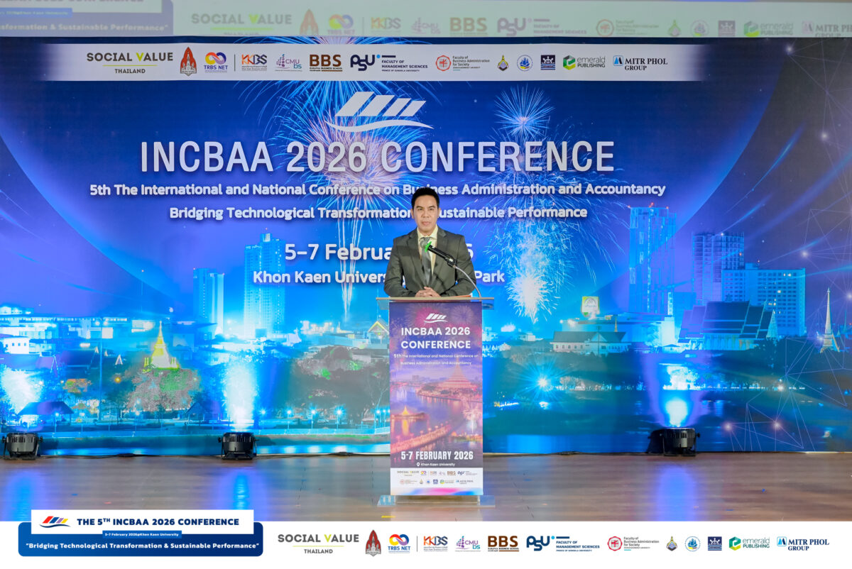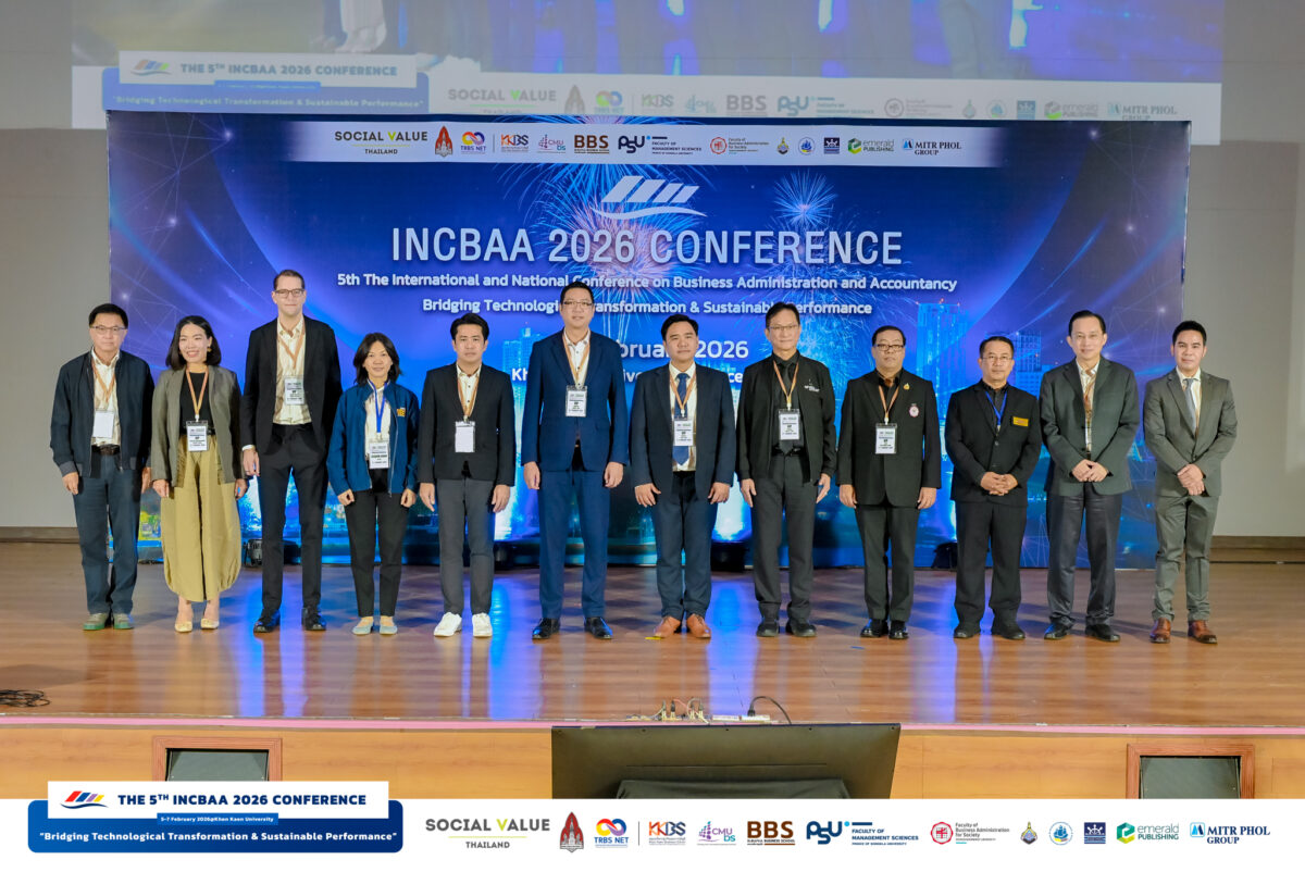 ระหว่างวันที่ 5 – 7 กุมภาพันธ์ 2569 คณะบริหารธุรกิจและการบัญชี มหาวิทยาลัยขอนแก่น จัดงานการประชุมวิชาการระดับชาติและนานาชาติ ด้านบริหารธุรกิจและการบัญชี 2569 The International and National Conference on Business Administration and Accountancy 2026 (INCBAA 2026) ภายใต้หัวข้อ “Bridging Technological Transformation & Sustainable Performance” ณ คณะบริหารธุรกิจและการบัญชี และ อุทยานวิทยาศาสตร์ มหาวิทยาลัยขอนแก่น โดยมี ผู้ช่วยศาสตราจารย์ ดร.พงษ์สุทธิ พื้นแสน คณบดีคณะบริหารธุรกิจและการบัญชี เป็นประธานกล่าวเปิดงาน และ รองศาสตราจารย์ ดร.ศุภวัตร มีพร้อม ประธานหลักสูตรบริหารธุรกิจบัณฑิต สาขาวิชาการจัดการธุรกิจบริการและอีเว้นท์ ในฐานะประธานจัดงาน กล่าวรายงานวัตถุประสงค์การจัดประชุม