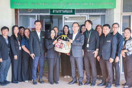 รองศาสตราจารย์ นพ.ชาญชัย พานทองวิริยะกุล อธิการบดีมหาวิทยาลัยขอนแก่น มอบกำลังใจบุคลากรทางการแพทย์ พร้อมมอบกระเช้าสวัสดีปีใหม่ 2569 ให้แก่บุคลากรทางการแพทย์ ของโรงพยาบาลศรีนครินทร์ และศูนย์หัวใจสิริกิติ์ ภาคตะวันออกเฉียงเหนือ เพื่อเป็นกำลังใจแก่ผู้ปฏิบัติหน้าที่ในช่วงวันหยุดเทศกาลปีใหม่ที่ผ่านมา โดยมี รศ.นพ.ภัทรพงษ์ มกรเวส คณบดี คณะแพทยศาสตร์ พร้อมด้วยทีมผู้บริหารคณะแพทยศาสตร์ให้การต้อนรับ