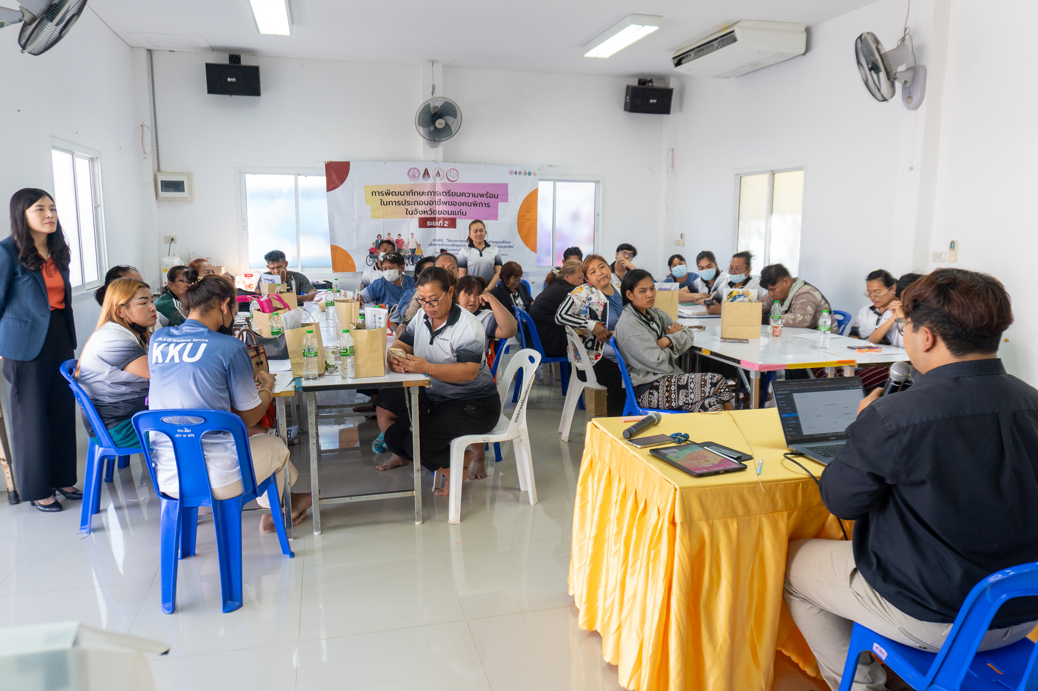สำนักบริการวิชาการ มหาวิทยาลัยขอนแก่น เดินหน้าขับเคลื่อนโครงการ “การขยายผลเครือข่ายอุดมศึกษาเพื่อการพัฒนาศักยภาพคนพิการ เพื่อการประกอบอาชีพผ่านโมเดลการฝึกอบรม-ฝึกงาน คนพิการ มจธ. ระยะที่ 2” โดยจัดกิจกรรมอบรมเชิงปฏิบัติการในหัวข้อ “กิจกรรมการตลาดออนไลน์เบื้องต้น” เพื่อส่งเสริมทักษะด้านดิจิทัลและการประกอบอาชีพให้แก่คนพิการในพื้นที่