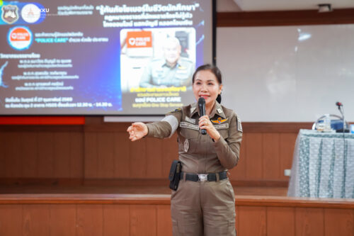 นอกจากนี้ ยังมีการแนะนำการใช้งานแอปพลิเคชัน “POLICE CARE” ซึ่งเป็นช่องทางในการติดต่อสื่อสาร แจ้งเหตุ และรับข้อมูลข่าวสารจากเจ้าหน้าที่ตำรวจ โดยมีการสาธิตการใช้งานเบื้องต้น เพื่อให้นักศึกษาสามารถนำไปใช้ประโยชน์ได้อย่างถูกต้องและมีประสิทธิภาพ อีกทั้งยังถือเป็นการเสริมสร้างความปลอดภัยและความตระหนักรู้ด้านกฎหมายแก่เยาวชน อันจะเป็นรากฐานสำคัญของการใช้เทคโนโลยีอย่างสร้างสรรค์และรับผิดชอบต่อสังคมต่อไป.