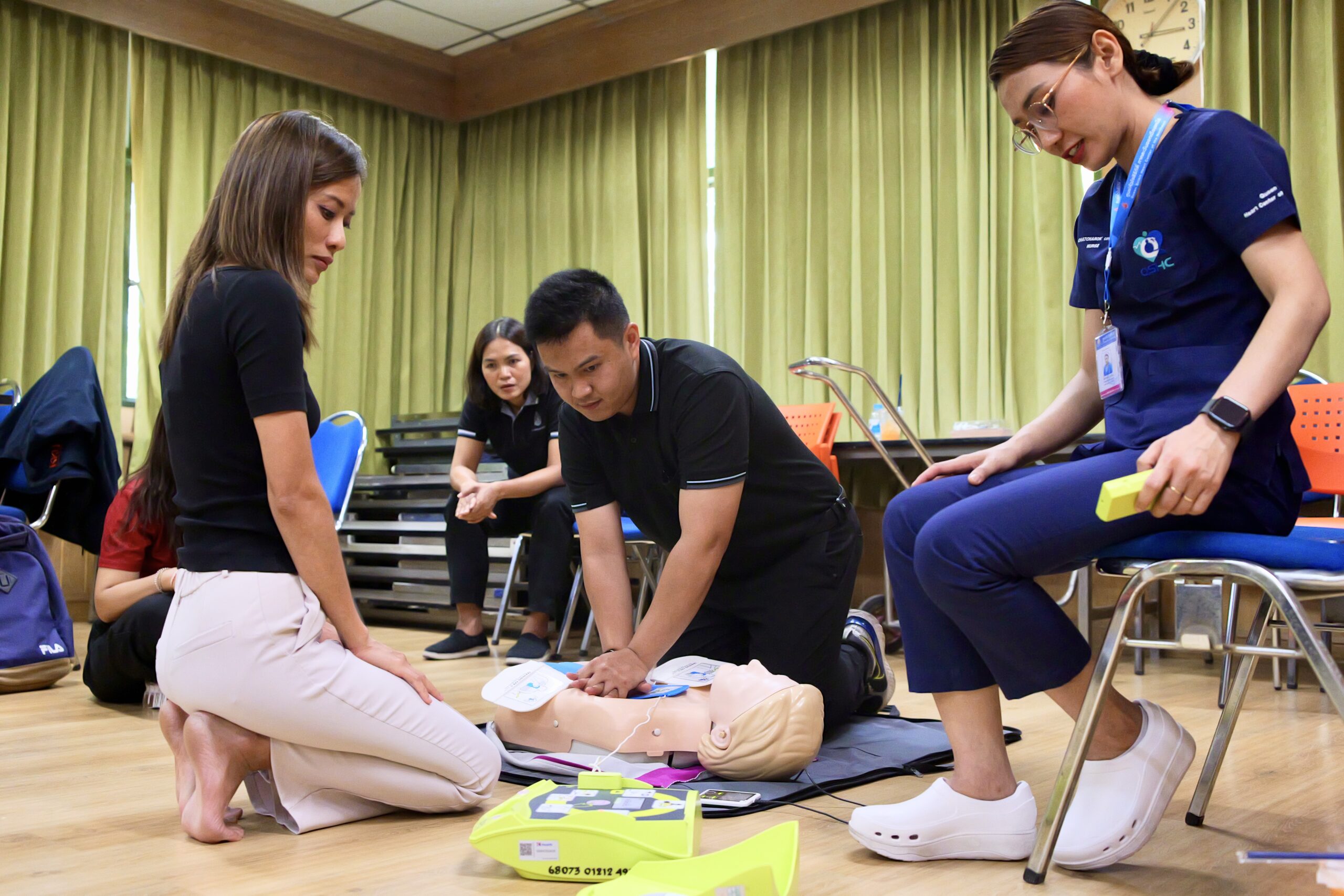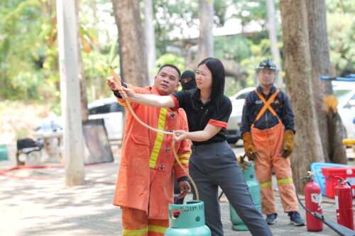 บรรยากาศตลอดการอบรม บุคลากรทั้ง 5 หน่วยงานให้ความสนใจและตั้งใจทดลองใช้อุปกรณ์จริงทั้งการดับเพลิงและการทำ CPR โดยผู้เข้าร่วมโครงการทุกคนต้องผ่านการสอบปฏิบัติในทักษะการช่วยฟื้นคืนชีพขั้นพื้นฐานและการใช้เครื่อง AED เพื่อรับใบรับรอง (Certificate) การผ่านเกณฑ์ประเมินจากวิทยากร นับเป็นการสร้างมาตรฐานความปลอดภัยร่วมกัน และบูรณาการความเข้มแข็งของเครือข่ายหน่วยงานภายในอาคารพิมล กลกิจ ให้เป็นพื้นที่ปลอดภัยสำหรับทั้งบุคลากรและนักศึกษาอย่างแท้จริง