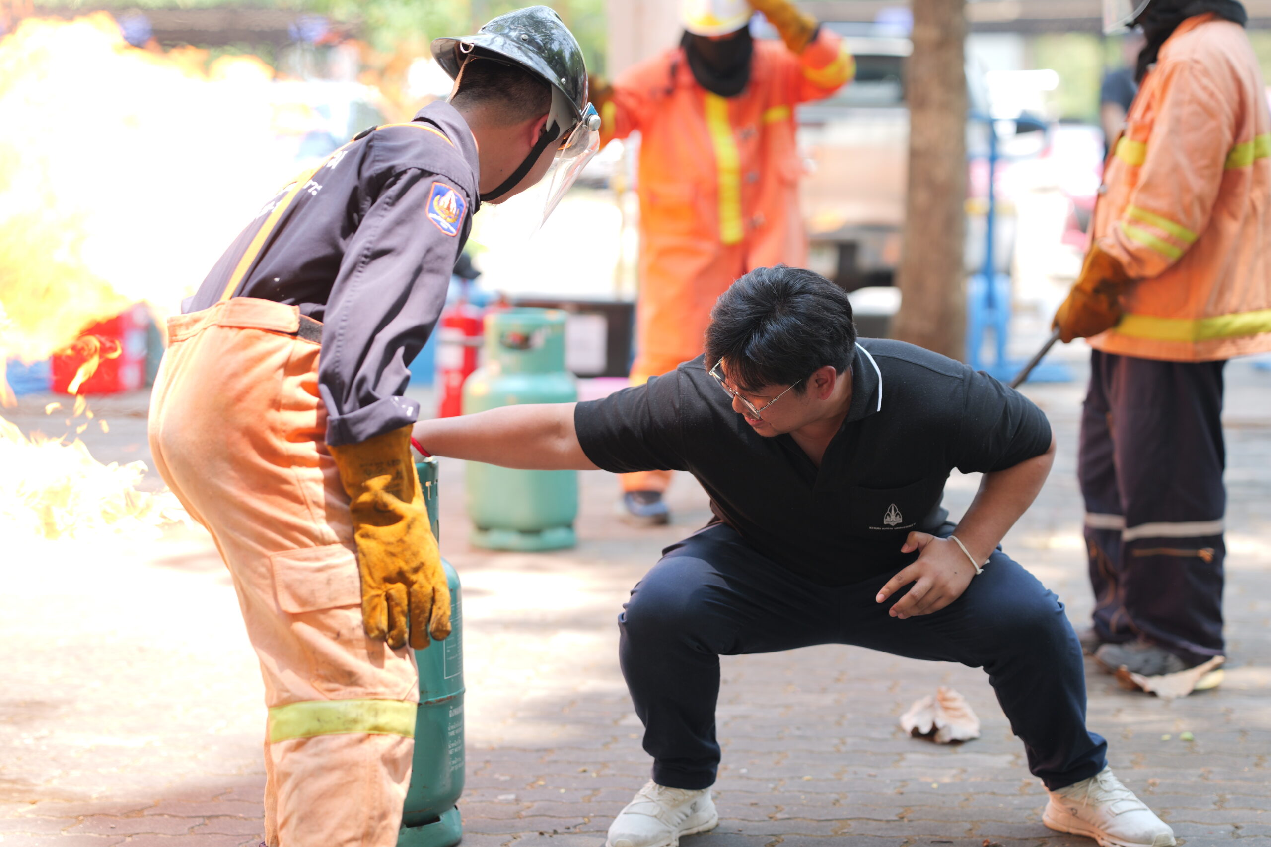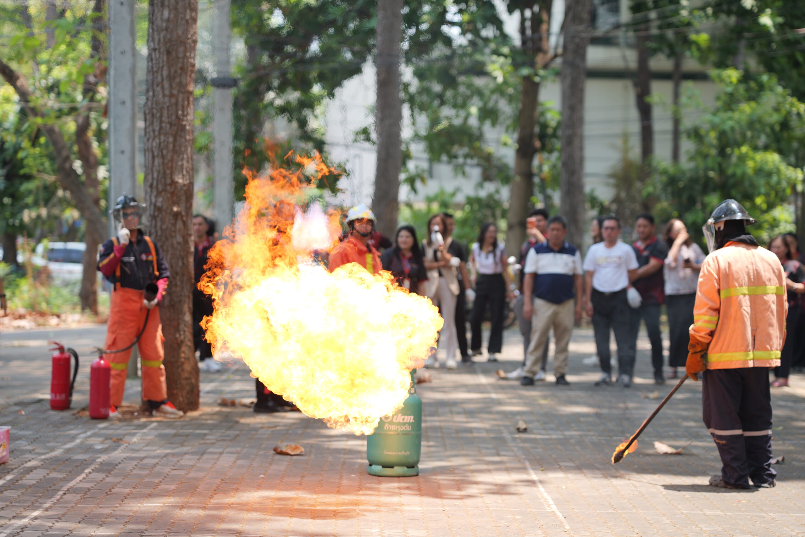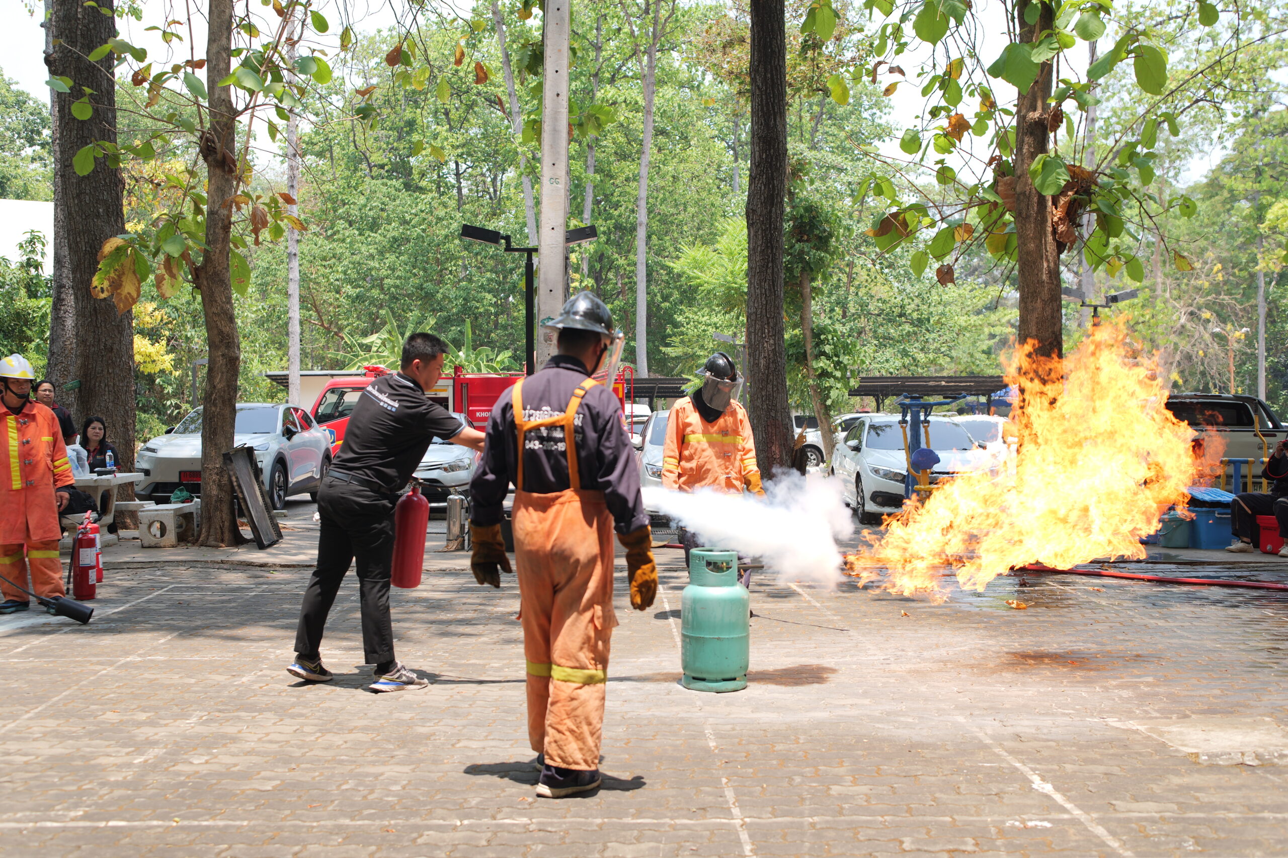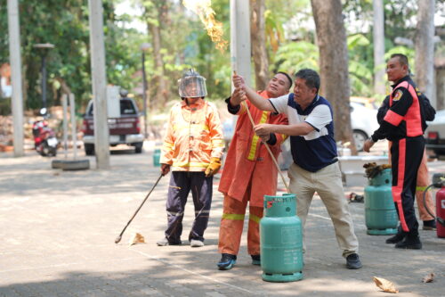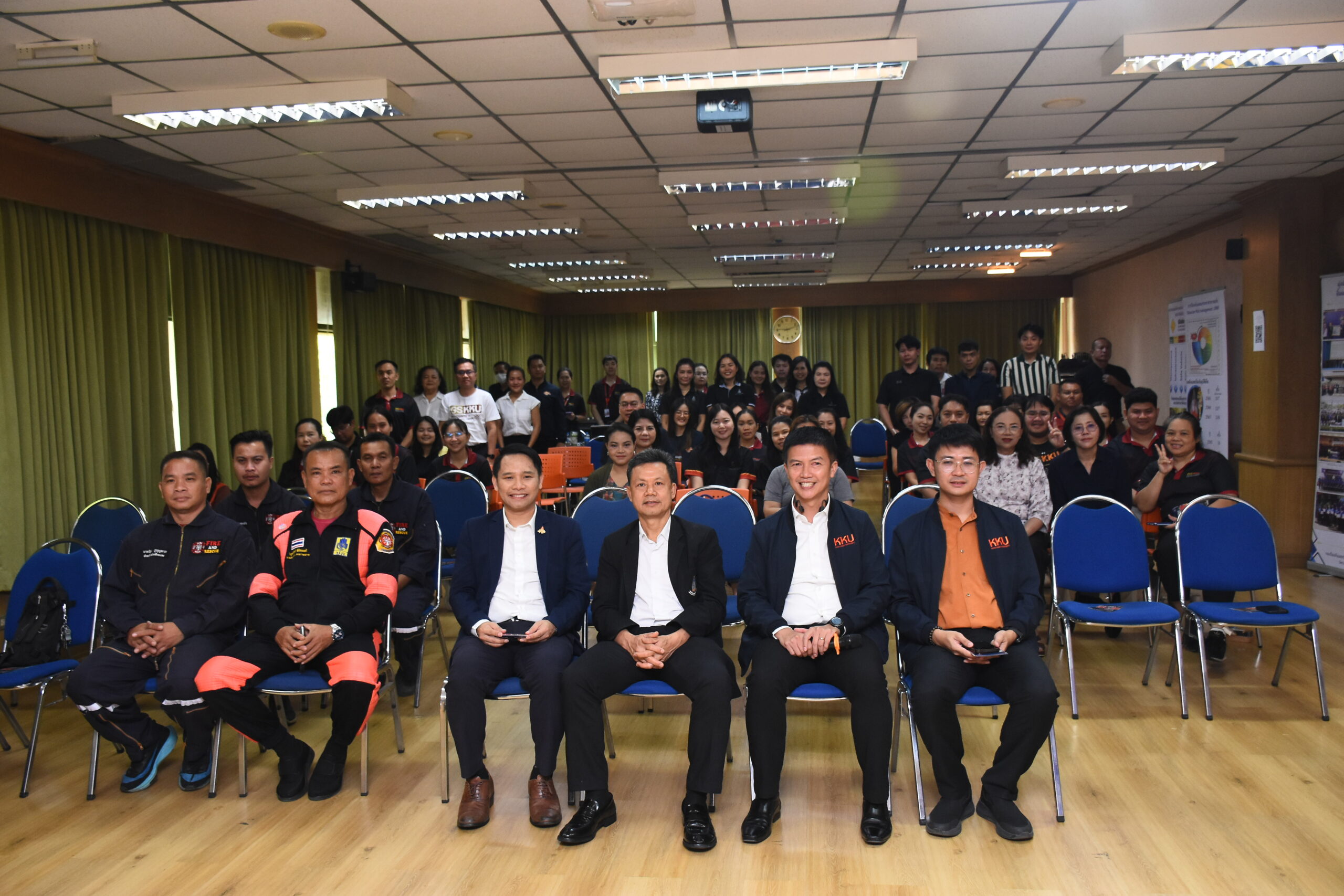 สำหรับการอบรมแบ่งออกเป็น 2 ส่วนสำคัญ โดยในช่วงเช้า เป็นการอบรมด้าน การจัดการความเสี่ยงด้านสาธารณภัย (Disaster Risk Management) ในอาคารสูง และการบัญชาเหตุการณ์ ได้รับเกียรติจาก นายมรกต สุบิน ผู้อำนวยการกองป้องกันและรักษาความปลอดภัย มหาวิทยาลัยขอนแก่น พร้อมทีมวิทยากรผู้เชี่ยวชาญ มาบรรยายให้ความรู้และนำผู้เข้าร่วมฝึกปฏิบัติการจำลองสถานการณ์การระงับอัคคีภัยเบื้องต้น และการฝึกใช้ถังดับเพลิงอย่างถูกวิธี