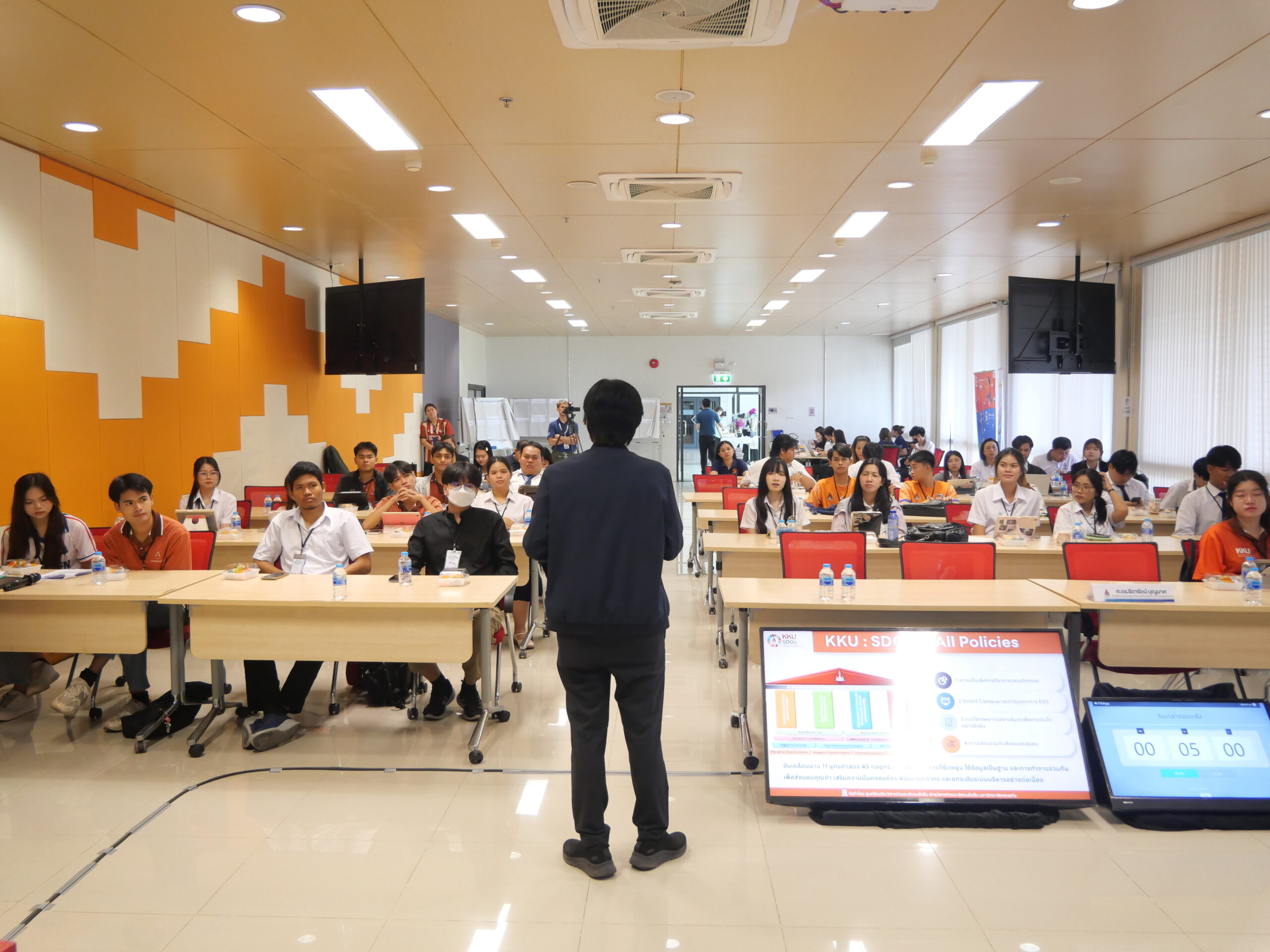 พิธีเปิดได้รับเกียรติจาก รองศาสตราจารย์เพ็ญศรี เจริญวานิช รองอธิการบดีฝ่ายกิจการนักศึกษาและนวัตวณิชย์ เป็นประธาน พร้อมบรรยายพิเศษในหัวข้อ “KKU EGGS Students’ Identity และ SDGs ในการพัฒนานักศึกษา” เพื่อถ่ายทอดแนวคิดการพัฒนานักศึกษายุคใหม่ให้มีอัตลักษณ์ที่สอดคล้องกับเป้าหมายการพัฒนาที่ยั่งยืน ขณะที่ ศาสตราจารย์ธิดารัตน์ บุญมาศ รองอธิการบดีฝ่ายวิสาหกิจและสังคมยั่งยืน ได้ร่วมสะท้อนทิศทางมหาวิทยาลัยผ่านหัวข้อ “KKU สู่ความยั่งยืน: จากนโยบายสู่การลงมือทำจริง” เพื่อเชื่อมโยงนโยบายสู่การปฏิบัติที่จับต้องได้