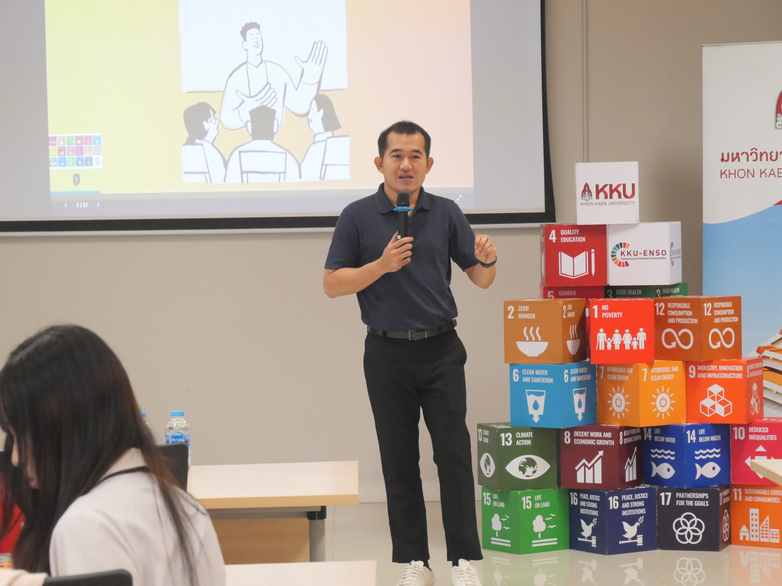 เมื่อวันที่ 1 เมษายน 2569 ณ ห้องประชุม M5 ชั้น 3 อาคารอำนวยการอุทยานวิทยาศาสตร์ มหาวิทยาลัยขอนแก่น ฝ่ายวิสาหกิจและสังคมยั่งยืน โดยศูนย์ส่งเสริมวิสาหกิจและสังคมยั่งยืน ร่วมกับกองพัฒนานักศึกษาและศิษย์เก่าสัมพันธ์ เปิดเวทีสร้างสรรค์ไอเดียเพื่ออนาคต ผ่านกิจกรรม “การมีส่วนร่วมของนักศึกษาเพื่อการพัฒนาที่ยั่งยืน (KKU SDGs Design Challenge)” ภายใต้โครงการ EGGS Smart Leadership Forum: เสริมสร้างศักยภาพผู้นำนักศึกษาสู่การพัฒนาที่ยั่งยืน (SDGs Perspective) เพื่อเปิดพื้นที่ให้นักศึกษาแกนนำได้ร่วมคิด ออกแบบ และร่วมขับเคลื่อนแนวคิดด้านความยั่งยืนสู่การปฏิบัติจริงอย่างเป็นรูปธรรม#