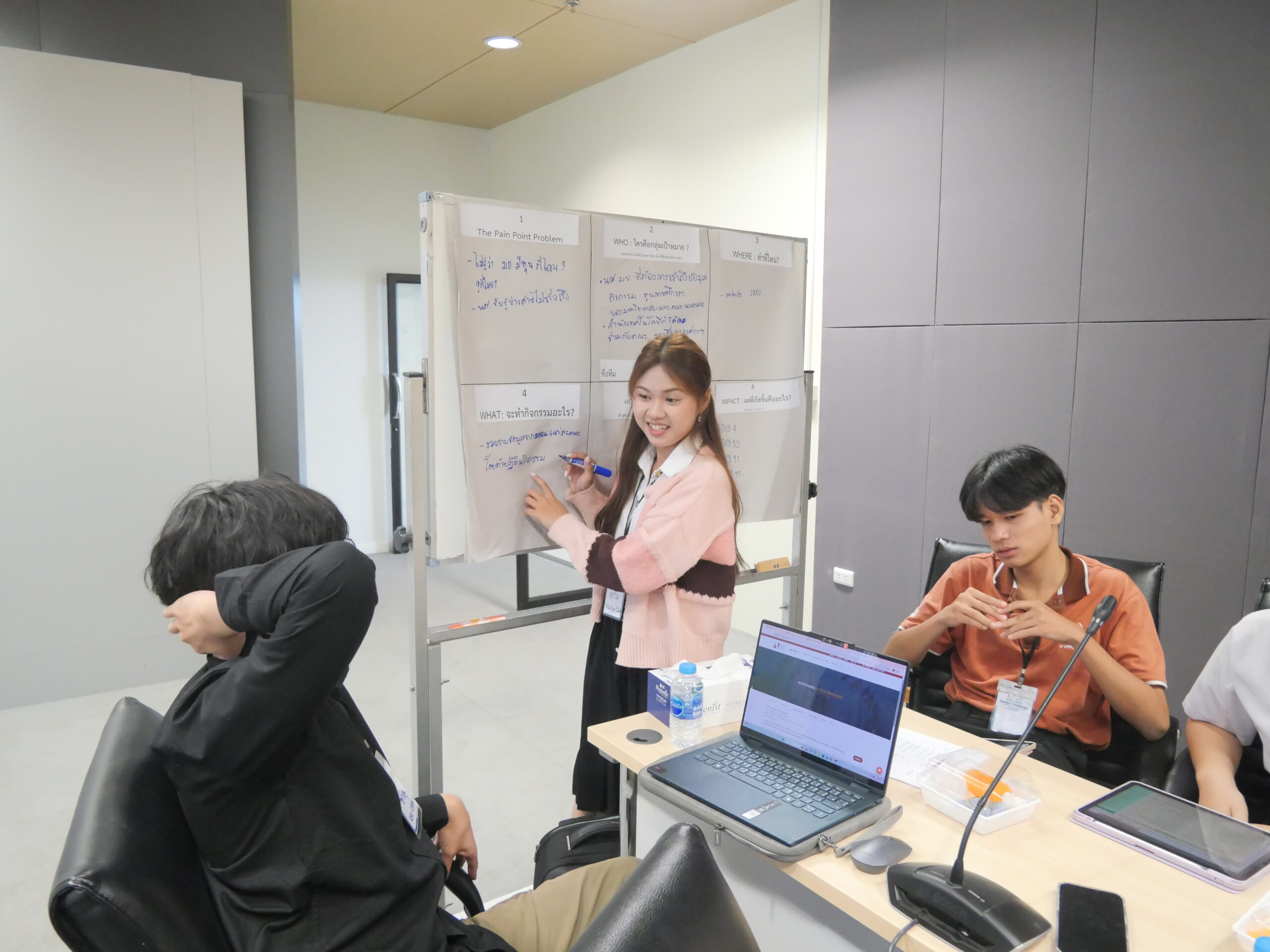 เสริมทักษะเชิงปฏิบัติอย่างเข้มข้นด้วยการบรรยายหัวข้อ “เทคนิคการนำเสนอ Project Pitching” โดย คุณสุวิทย์ จันทฤทธิ์ ผู้จัดการแผนกพัฒนาธุรกิจ อุทยานวิทยาศาสตร์ ช่วยให้นักศึกษาเรียนรู้การสื่อสารไอเดียอย่างมีประสิทธิภาพ ก่อนต่อยอดสู่กิจกรรม Workshop “พลิกไอเดีย สร้างกิจกรรม ยั่งยืนจริง” ที่เปิดโอกาสให้นักศึกษาได้ระดมความคิด ออกแบบโครงการ และนำเสนอผลงานต่อคณะกรรมการผู้ทรงคุณวุฒิ