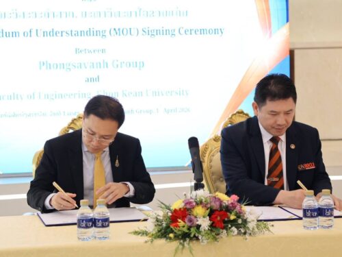 คณะวิศวกรรมศาสตร์ มหาวิทยาลัยขอนแก่น เดินหน้าขยายความร่วมมือระดับนานาชาติ จัดพิธีลงนามบันทึกข้อตกลงความร่วมมือ (MOU) ร่วมกับ Phongsavanh Group กลุ่มบริษัทชั้นนำของ สาธารณรัฐประชาธิปไตยประชาชนลาว เมื่อวันที่ 1 เมษายน 2569 ณ สำนักงานใหญ่ของกลุ่มบริษัท ในนครหลวง เวียงจันทน์