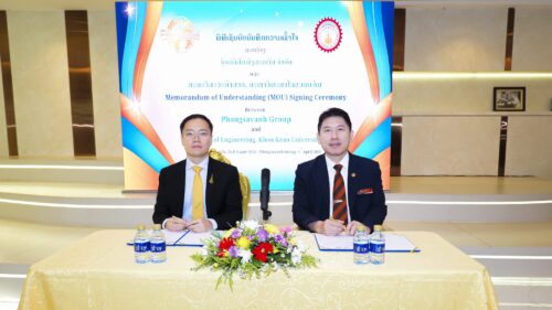 ในการนี้ ได้รับเกียรติจาก ท่านสมบูรณ์ พงสะหวัน ผู้บริหารระดับสูงของ Phongsavanh Group เป็นผู้แทนลงนามร่วมกับ รศ.ดร.รัชพล สันติวรากร คณบดีคณะวิศวกรรมศาสตร์ มหาวิทยาลัยขอนแก่น โดยมีผู้บริหารและบุคลากรจากทั้งสองฝ่ายเข้าร่วมเป็นสักขีพยานอย่างพร้อมเพรียง