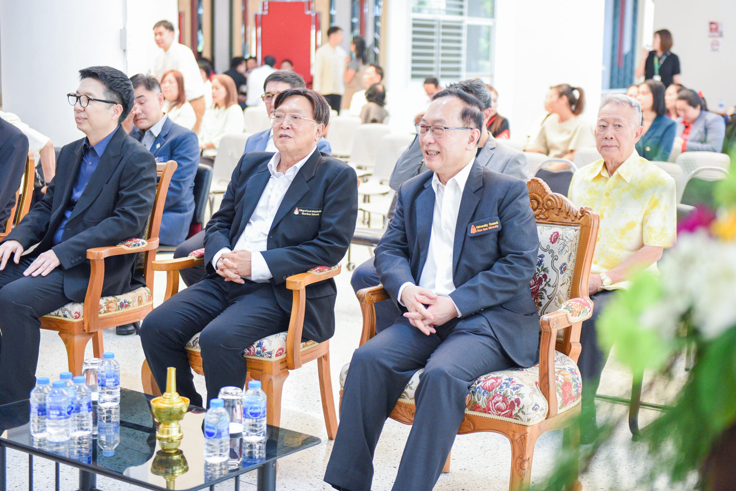 ภายในงานได้รับเกียรติจาก รศ.นพ.ชาญชัย พานทองวิริยะกุล อธิการบดีมหาวิทยาลัยขอนแก่น เป็นประธานในพิธี พร้อมด้วยผู้บริหารมหาวิทยาลัย คณาจารย์ บุคลากร และเครือข่ายความร่วมมือจากหลากหลายภาคส่วน เข้าร่วมแสดงความยินดี และร่วมเฉลิมฉลองในโอกาสสำคัญดังกล่าวอย่างพร้อมเพรียง โดยมี ผศ.ดร.ศิริศักดิ์ เหล่าจันขาม คณบดีวิทยาลัยการปกครองท้องถิ่น พร้อมด้วยคณาจารย์และบุคลากรวิทยาลัยการปกครองท้องถิ่น ให้การต้อนรับอย่างอบอุ่น