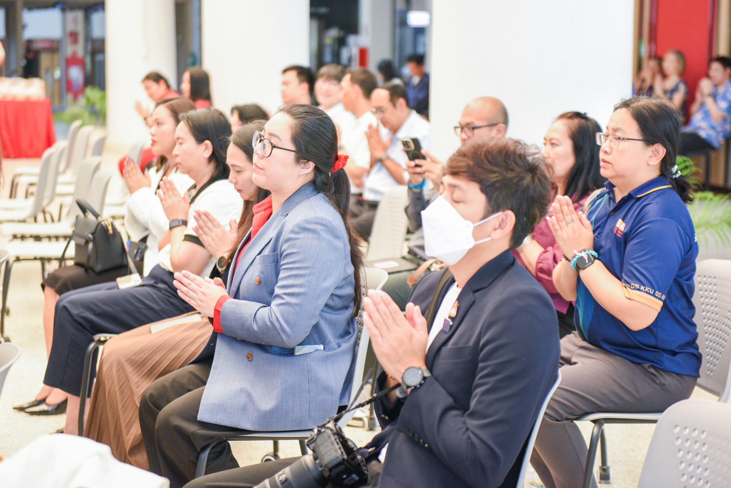 กิจกรรมเริ่มต้นด้วยการลงทะเบียนและต้อนรับแขกผู้มีเกียรติร่วมงาน จากนั้นเป็นพิธีเจริญพระพุทธมนต์ โดยได้รับความเมตตาจากพระราชประสิทธิคุณ วัดเทพปูรณาราม ต.ท่าพระ อ.เมือง ขอนแก่น เป็นประธานฝ่ายสงฆ์ พร้อมด้วยพระสงฆ์ จำนวน 7 รูป เพื่อความเป็นสิริมงคลแก่หน่วยงานและผู้เข้าร่วมงาน ต่อด้วยพิธีถวายภัตตาหารเพลแด่พระภิกษุสงฆ์ และในช่วงท้ายเป็นการพบปะเครือข่าย พร้อมรับประทานอาหารกลางวันร่วมกัน เพื่อเสริมสร้างความสัมพันธ์อันดีระหว่างผู้บริหาร บุคลากร และเครือข่ายความร่วมมือ