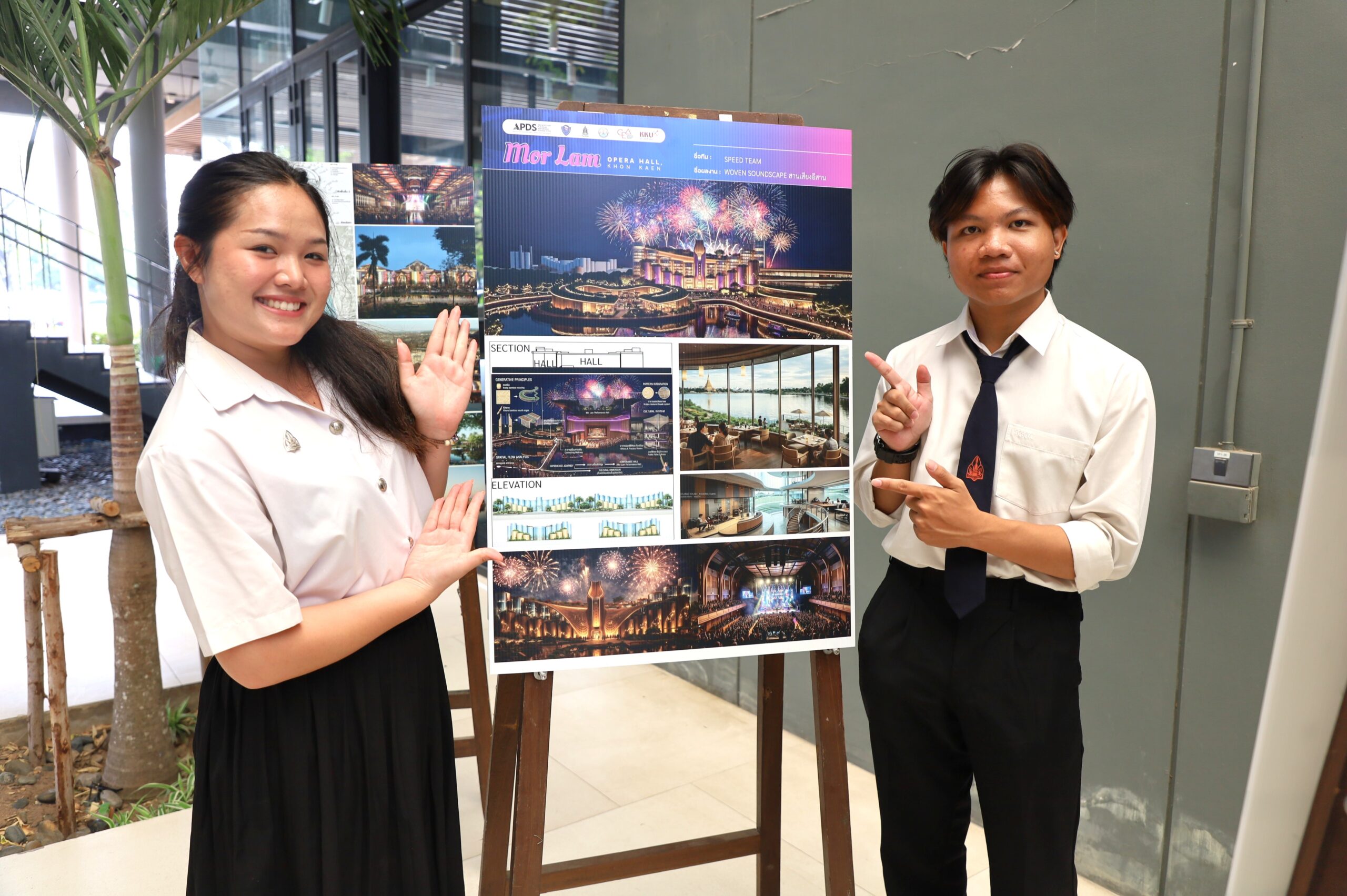 โดย Speed Team ร่วมกันแสดงความรู้สึกถึงการประกวดครั้งนี้ ว่า “เราอยากทำให้หมอลำกลายเป็น สิ่งที่มองเห็นและจับต้องได้ ผ่านงานสถาปัตยกรรม” ทีมเรามีการออกแบบที่ตอบโจทย์การใช้งานจริง สอดคล้องบริบทพื้นที่ และไม่ทิ้งชุมชนเดิมแต่เป็นการต่อยอดให้เกิดคุณค่าใหม่ ขณะเดียวกันยังสะท้อน การทำงานเป็นทีมที่ผสานความคิดหลากหลายสู่ผลงานเดียวอย่างมีประสิทธิภาพ “สถาปัตยกรรมคือการเปลี่ยนความคิดให้เป็นรูปธรรม และสร้างประโยชน์ให้สังคมได้จริง” สมาชิก Speed Team กล่าวทิ้งท้าย