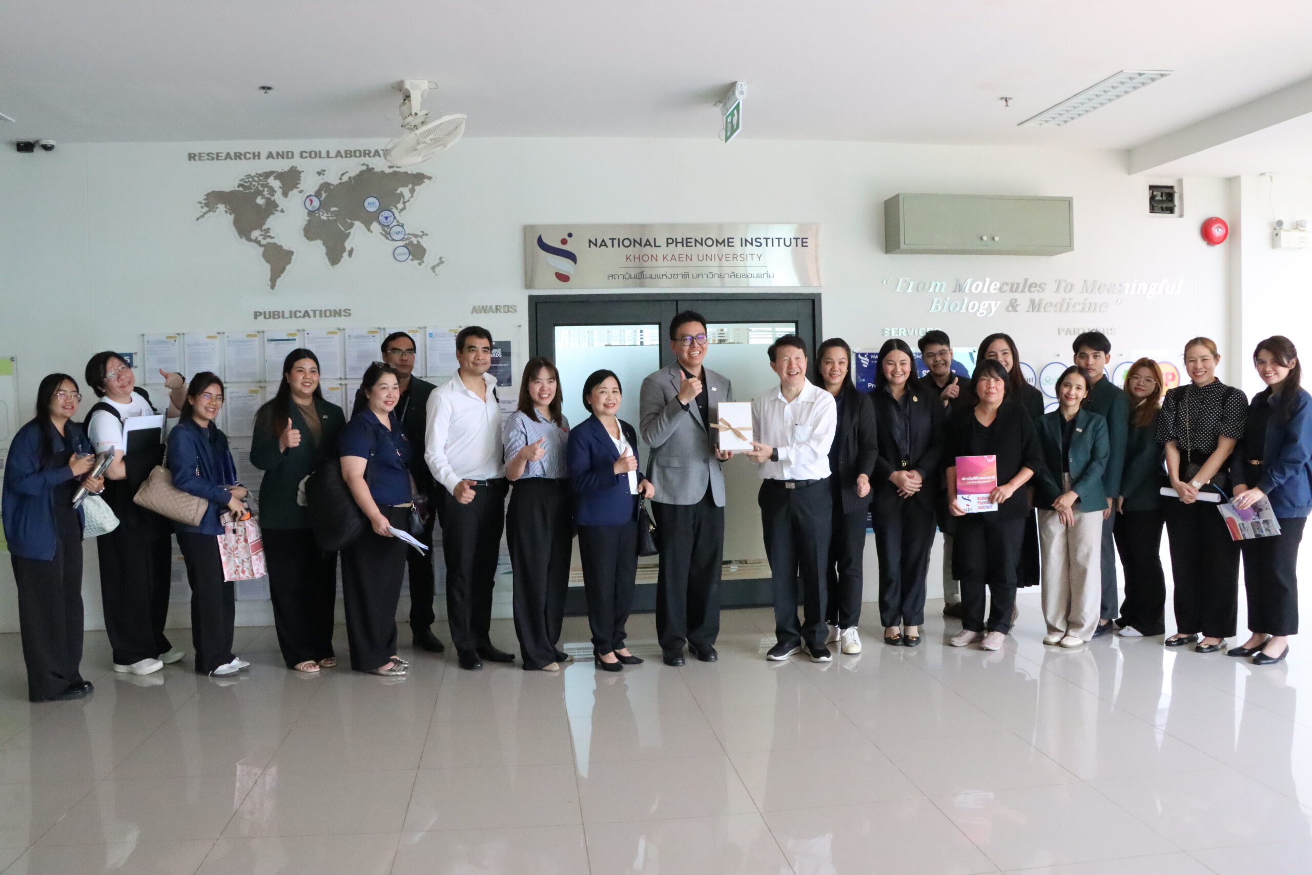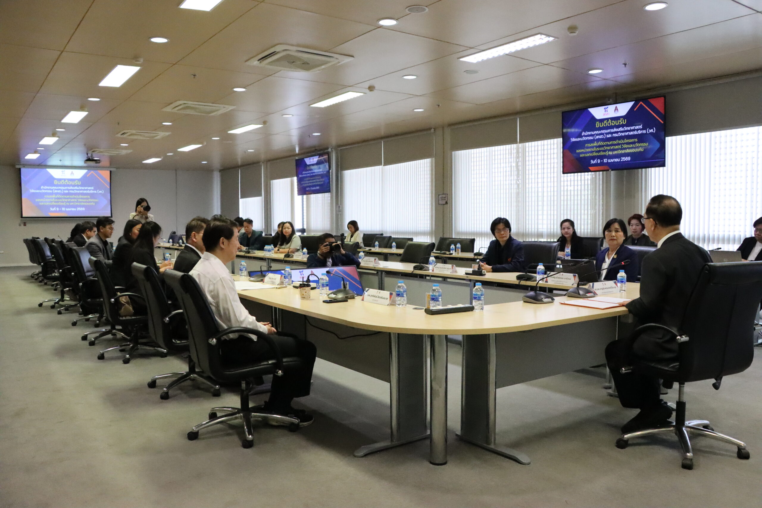 มหาวิทยาลัยขอนแก่น (มข.) ร่วมกับ สำนักงานคณะกรรมการส่งเสริมวิทยาศาสตร์ วิจัยและนวัตกรรม (สกสว.) และหน่วยงานภาคีเครือข่าย จัดกิจกรรมลงพื้นที่ติดตามการดำเนินโครงการของหน่วยงานในระบบวิทยาศาสตร์ วิจัยและนวัตกรรม และแลกเปลี่ยนเรียนรู้ โดยมี รองศาสตราจารย์ นพ.ชาญชัย พานทองวิริยะกุล อธิการบดีมหาวิทยาลัยขอนแก่น ให้การต้อนรับคณะผู้บริหารจาก สกสว. นำโดย ศาสตราจารย์ ดร.วิษณุ มีอยู่ รองผู้อำนวยการ สกสว. พร้อมด้วยผู้แทนจากกรมวิทยาศาสตร์บริการ (วศ.) สำนักงานคณะกรรมการอาหารและยา (อย.) และสำนักงานเทคโนโลยีและนวัตกรรมด้านชีววิทยาศาสตร์ (สทนว.) ณ อาคารอำนวยการอุทยานวิทยาศาสตร์ภูมิภาค ภาคตะวันออกเฉียงเหนือ เมื่อวันที่ 9 เมษายน 2569 ที่ผ่านมา