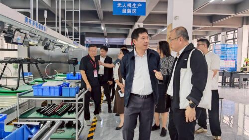 ในโอกาสนี้ คณะผู้แทนยังได้เข้าเยี่ยมชมศูนย์โดรนของ Guangxi City Vocational University เพื่อศึกษาศักยภาพด้านการออกแบบและการผลิตอากาศยานไร้คนขับ อันเป็นการวางรากฐานความร่วมมือในการถ่ายทอดเทคโนโลยีและการพัฒนาหลักสูตรร่วมกันในอนาคต