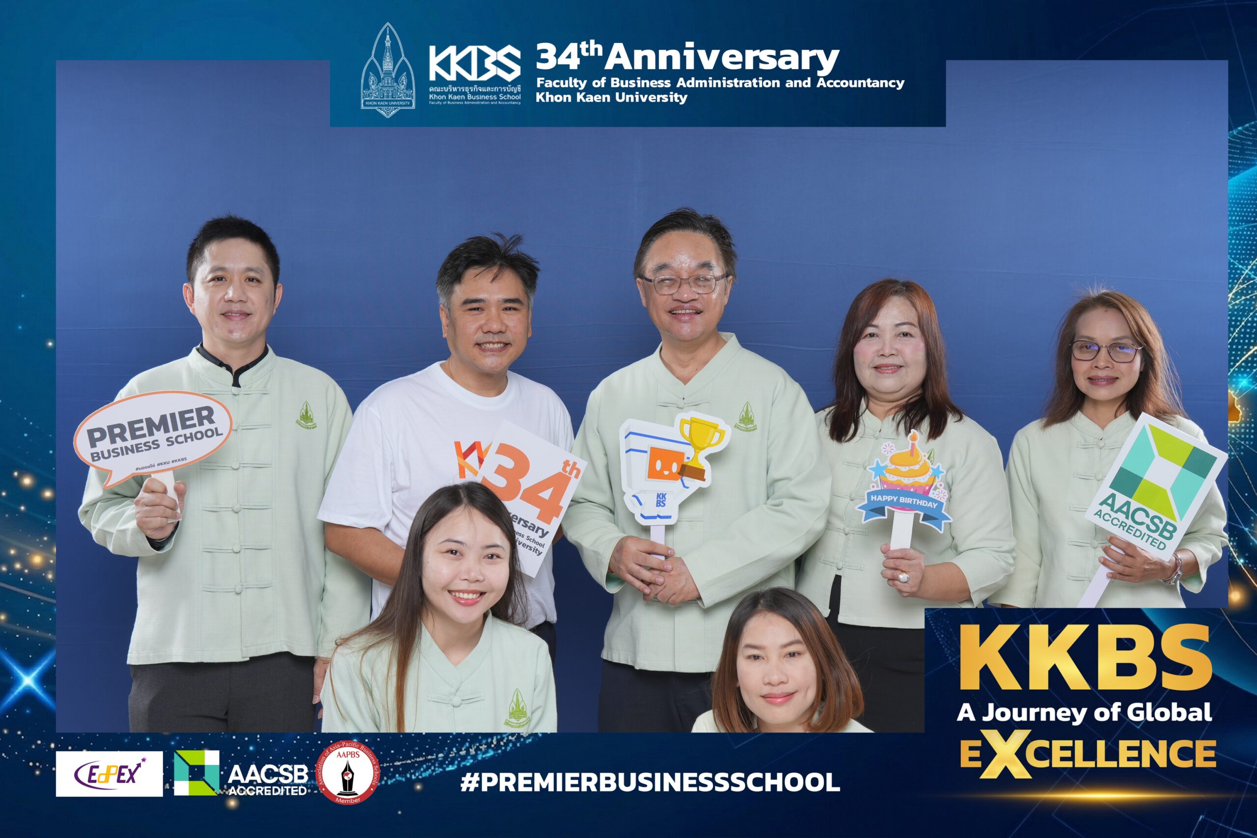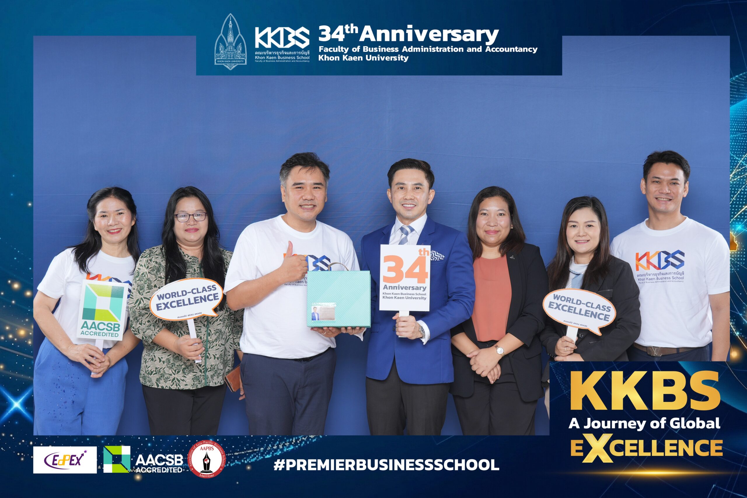 “ในวาระก้าวสู่ปีที่ 34 คณะฯ ขอตั้งปณิธานที่จะยังคงมีความมุ่งมั่นในการพัฒนาเพื่อตอบสนองนโยบายและการขับเคลื่อนมหาวิทยาลัยขอนแก่น เป็นสถาบันการศึกษาด้านบริหารธุรกิจและการบัญชีที่สามารถผลิตบัณฑิตให้มีศักยภาพพร้อมขับเคลื่อนและผลักดันพัฒนาเศรษฐกิจไทยในยุคดิจิทัลให้เติบโตอย่างมั่นคงและก้าวสู่ระดับสากลอย่างยั่งยืน ตามวิสัยทัศน์ของคณะฯ “KKBS is a Premier Business School Focused on Industrial Integration for Sustainable Economic Development สถาบันบริหารธุรกิจชั้นนำที่มุ่งเน้นการบูรณาการองค์ความรู้และนวัตกรรมร่วมกับภาคอุตสาหกรรม เพื่อการพัฒนาเศรษฐกิจอย่างยั่งยืน” ซึ่งเป็นสิ่งที่ยึดมั่นในการพัฒนาคณะอย่างเสมอมา” คณบดีคณะบริหารธุรกิจและการบัญชี กล่าวถึงปณิธานความมุ่งมั่นในการพัฒนาขับเคลื่อนคณะฯ และมหาวิทยาลัย