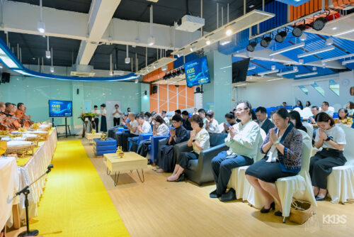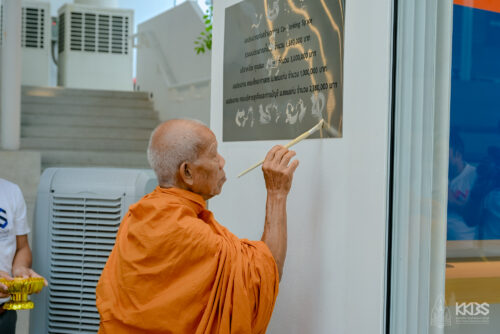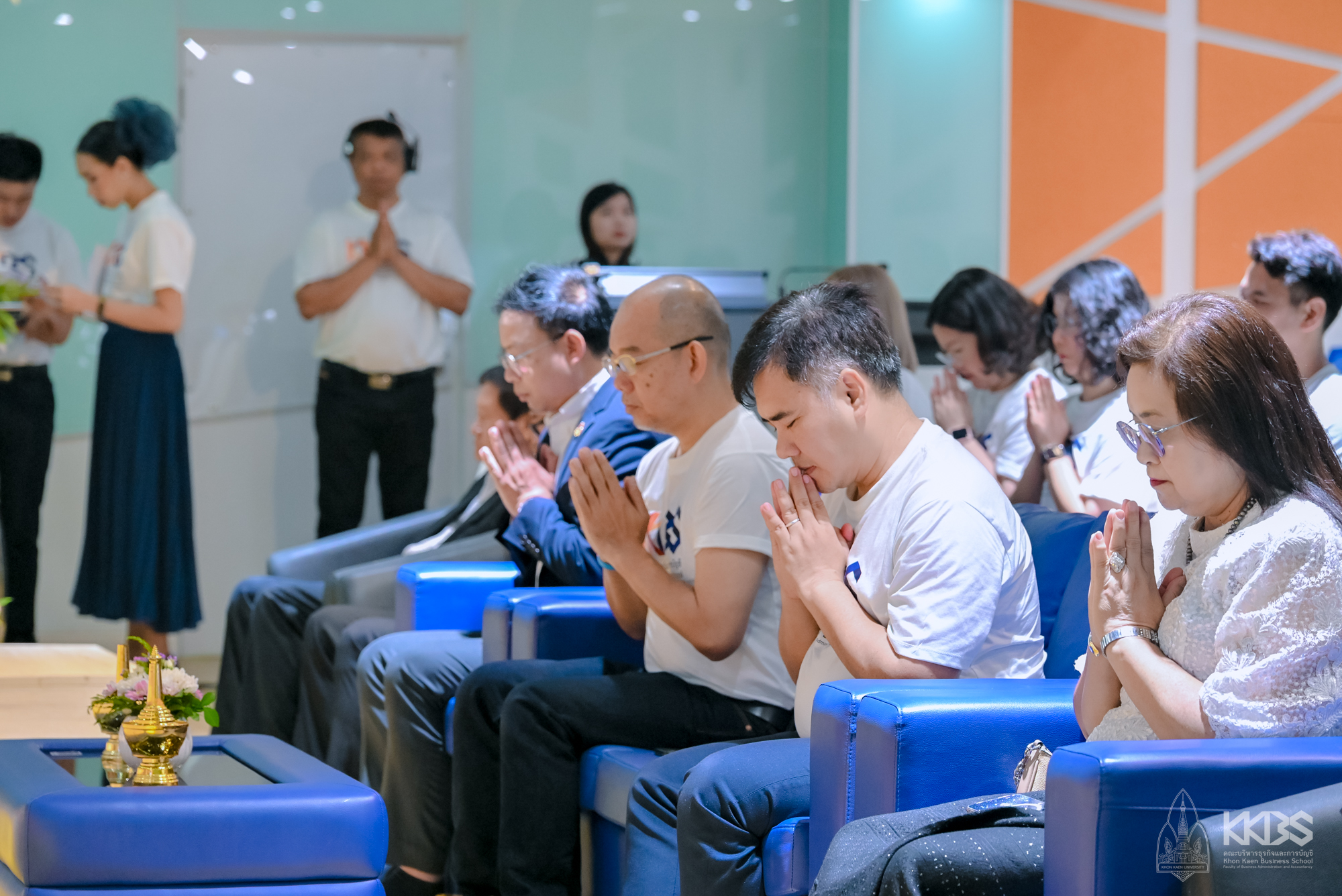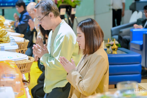 จากนั้นภายในห้องวังเลิศ (SMART CLASSROOM) ประธานในพิธีได้จุดธูปเทียนบูชาพระรัตนตรัย ก่อนจะไหว้พระรับศีล และพระสงฆ์เจริญพระพุทธมนต์ ต่อมาประธานในพิธีพร้อมด้วยผู้บริหารจากคณะฯ และหน่วยงานภายในมหาวิทยาลัยขอนแก่นได้นำถวายภัตตาหารเช้า พร้อมเครื่องไทยธรรมแด่พระภิกษุสงฆ์ และในช่วงท้ายพิธี พระครูสิริสารเมธี เจ้าคณะอำเภอหนองเรือ (ธ) วัดสว่างดอนยาง ได้กล่าวสัมโมทนียกถาและประพรมน้ำพระพุทธมนต์เพื่อความเป็นสิริมงคล สร้างขวัญ กำลังใจ ให้กับคณะผู้บริหาร คณาจารย์ บุคลากรผู้เข้าร่วมงาน และคณะบริหารธุรกิจและการบัญชี มหาวิทยาลัยขอนแก่น นอกจากนี้ ยังได้รับเมตตาจากพระเดชพระคุณ พระราชประสิทธิคุณ (สุนันท์ สุภาจาโร ป.ธ.๙, พธ.บ., พธ.ด.กิตติมศักดิ์) รองเจ้าคณะจังหวัดขอนแก่น เป็นประธานประกอบพิธีเจิมหน้าห้องชนะ สุพัฒสร (Co-Working Space) และประพรมน้ำพระพุทธมนต์เพื่อความเป็นสิริมงคล บริเวณอาคาร B01 และ BS02