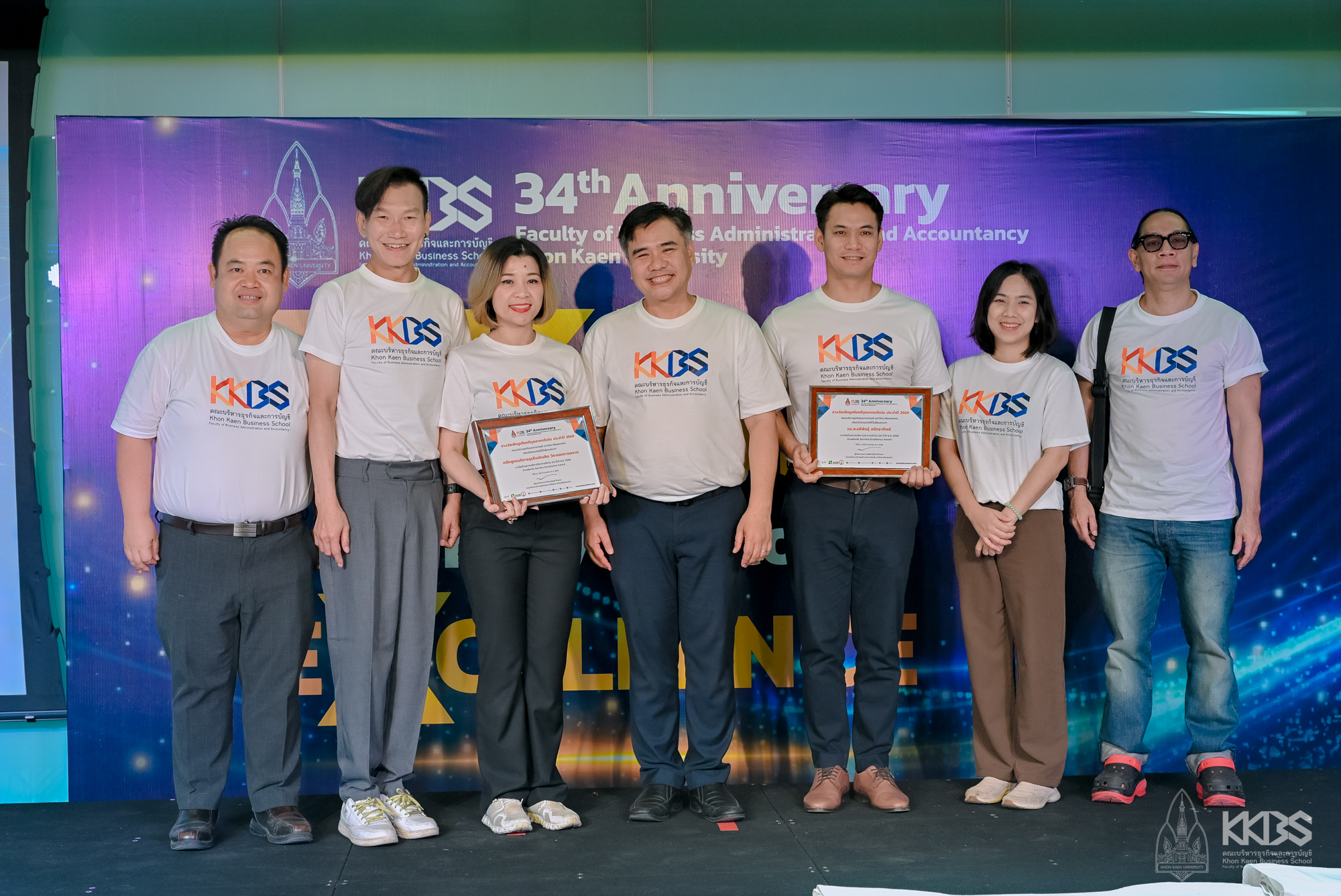 ขณะที่ด้านรางวัลนั้น คณบดี ให้ข้อมูลเพิ่มเติมว่า ที่ผ่านมาคณะได้รับรางวัลเชิดชูเกียรติจากมหาวิทยาลัยขอนแก่น เช่น รางวัลส่วนงานที่มีผลปฏิบัติงานด้านการคลังและพัสดุ “ระดับดีเด่น” ประจำปี 2562 รวมทั้งรางวัลด้านการผลิตบัณฑิต ประเภทการพัฒนานักศึกษา (รางวัลส่วนงานที่มีระบบและกลไกการพัฒนานักศึกษา) “ระดับดีมาก” ประจำปี 2566 และ ประจำปี 2568 นอกจากนี้ คณะยังได้รับรางวัล Friends of Makers ประเภท “The Talent Makers” จากสมาคมการค้าสตาร์ทอัพไทย ในฐานะที่เป็นสถาบันการศึกษาแห่งแรกที่ลงนามความร่วมมือ (MOU) กับสมาคมฯ รวมทั้งมีแผนงานและมีความมุ่งมั่นในการสร้าง Startup อย่างแท้จริง โดยคณะฯ ได้ให้ความสำคัญในการขับเคลื่อนและมุ่งมั่นสร้าง Startup หน้าใหม่อย่างต่อเนื่อง ซึ่งมีการจัดโครงการ KKBS Startup Camp อย่างต่อเนื่องในทุก ๆ ปี เพื่อเปิดโอกาสให้นักศึกษามหาวิทยาลัยขอนแก่น เข้ามาเรียนรู้เกี่ยวกับธุรกิจ Startup และเตรียมความพร้อมเพื่อเป็นผู้ประกอบการ Startup