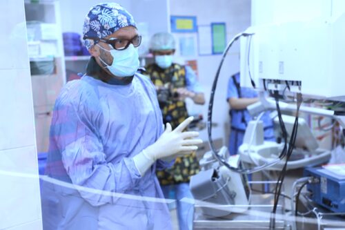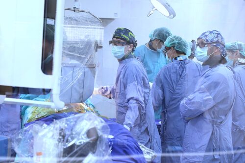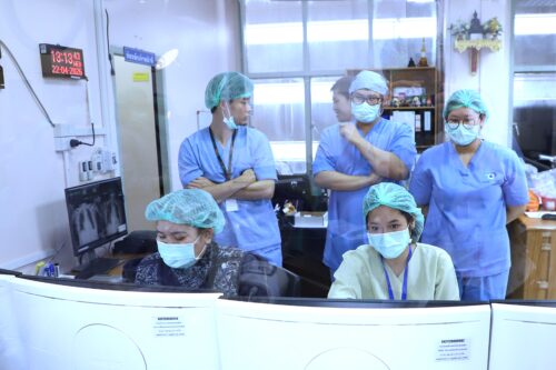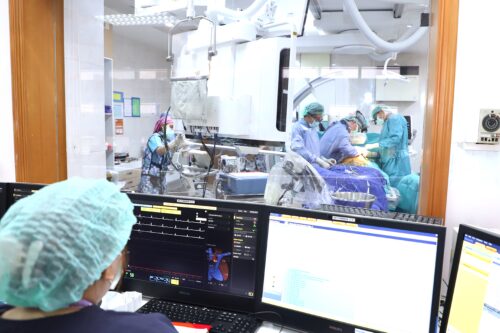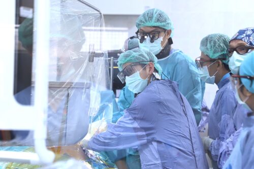 สำหรับผู้ป่วยรายนี้ ทีมแพทย์ได้ประเมินแล้วพบว่าการเข้าถึงผ่านหลอดเลือดแดงบริเวณขาหนีบ (Femoral artery) มีความซับซ้อนกว่าเคสอื่น ๆ จึงวางแผนเลือกใช้วิธีการเข้าทางหลอดเลือดใต้ไหปลาร้าซ้าย ซึ่งเป็นเทคนิคขั้นสูงที่ต้องอาศัยความชำนาญเฉพาะทางและการทำงานร่วมกันอย่างใกล้ชิดของทีมแพทย์และสหวิชาชีพ ทำให้ผลการรักษาเป็นไปด้วยความเรียบร้อยและประสบความสำเร็จอย่างดี