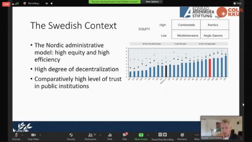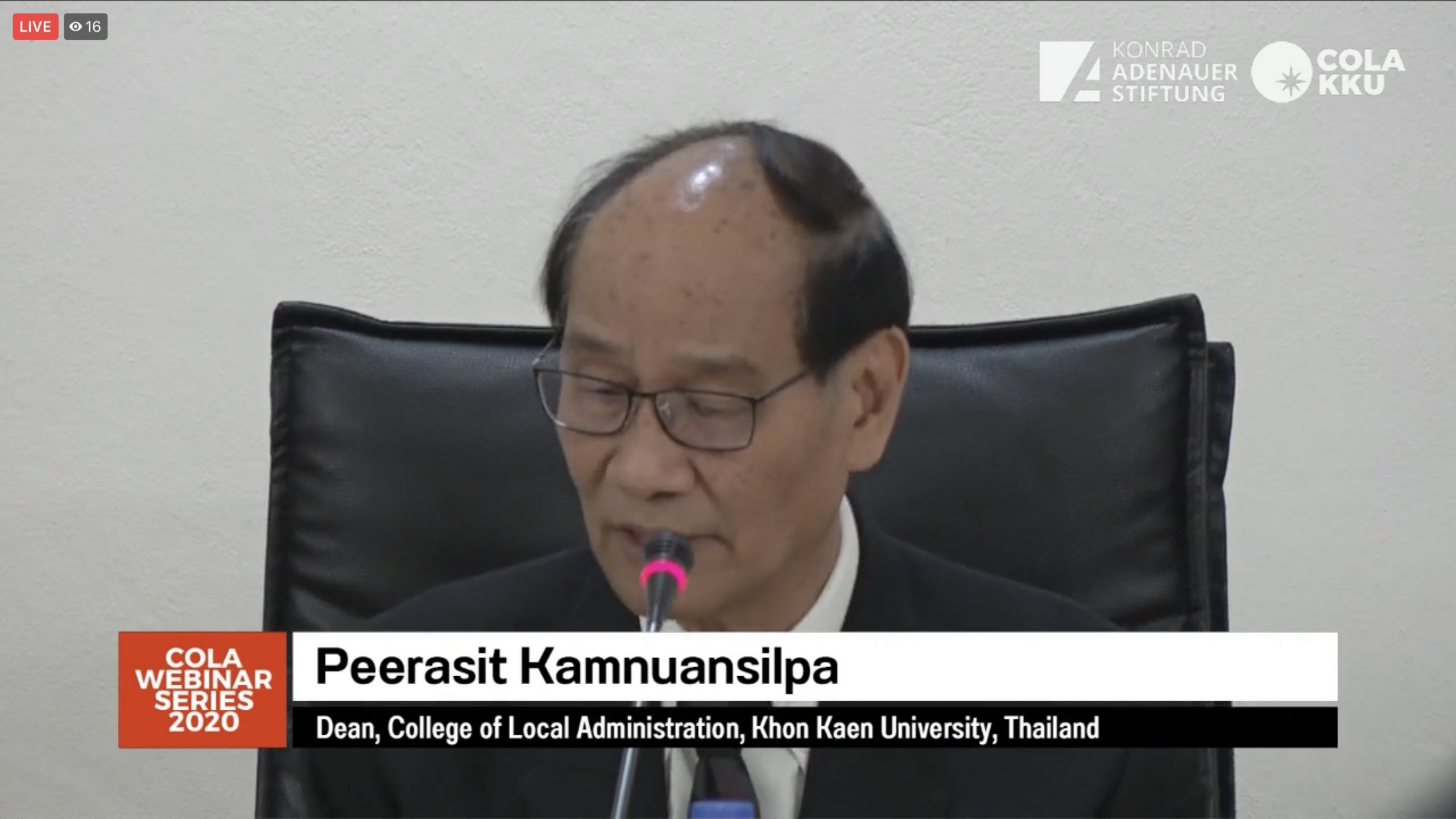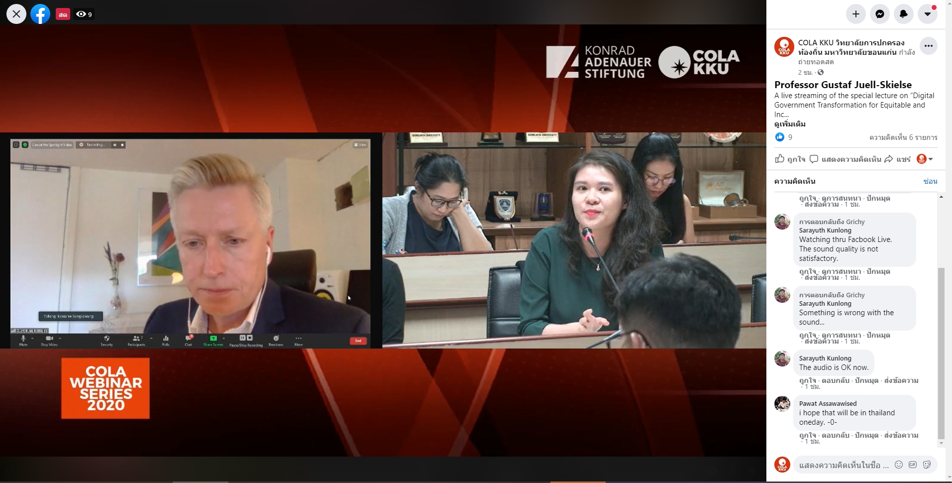 วันพฤหัสบดีที่ 17 กันยายน  2563  วิทยาลัยการปกครองท้องถิ่น ร่วมกับ มูลนิธิ คอนราด อาเดนาวร์ ประจำประเทศไทย นำเสนอการสัมมนา COLA Webinar Series 2020 ครั้งที่สาม โดยได้รับเกียรติการบรรยายจากวิทยากร Associate Prof. Gustaf Juell-Skielse ในหัวข้อ “Digital Government Transformation for Equitable and Inclusive Public Services” ซึ่งนำเสนอบน Zoom และหน้า Facebook