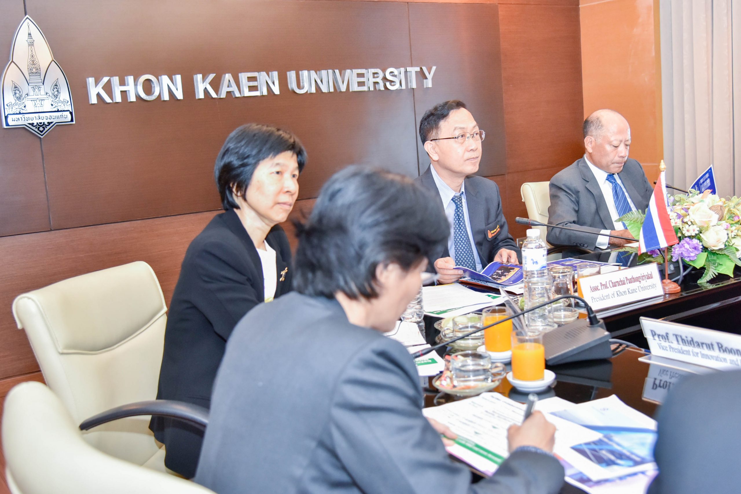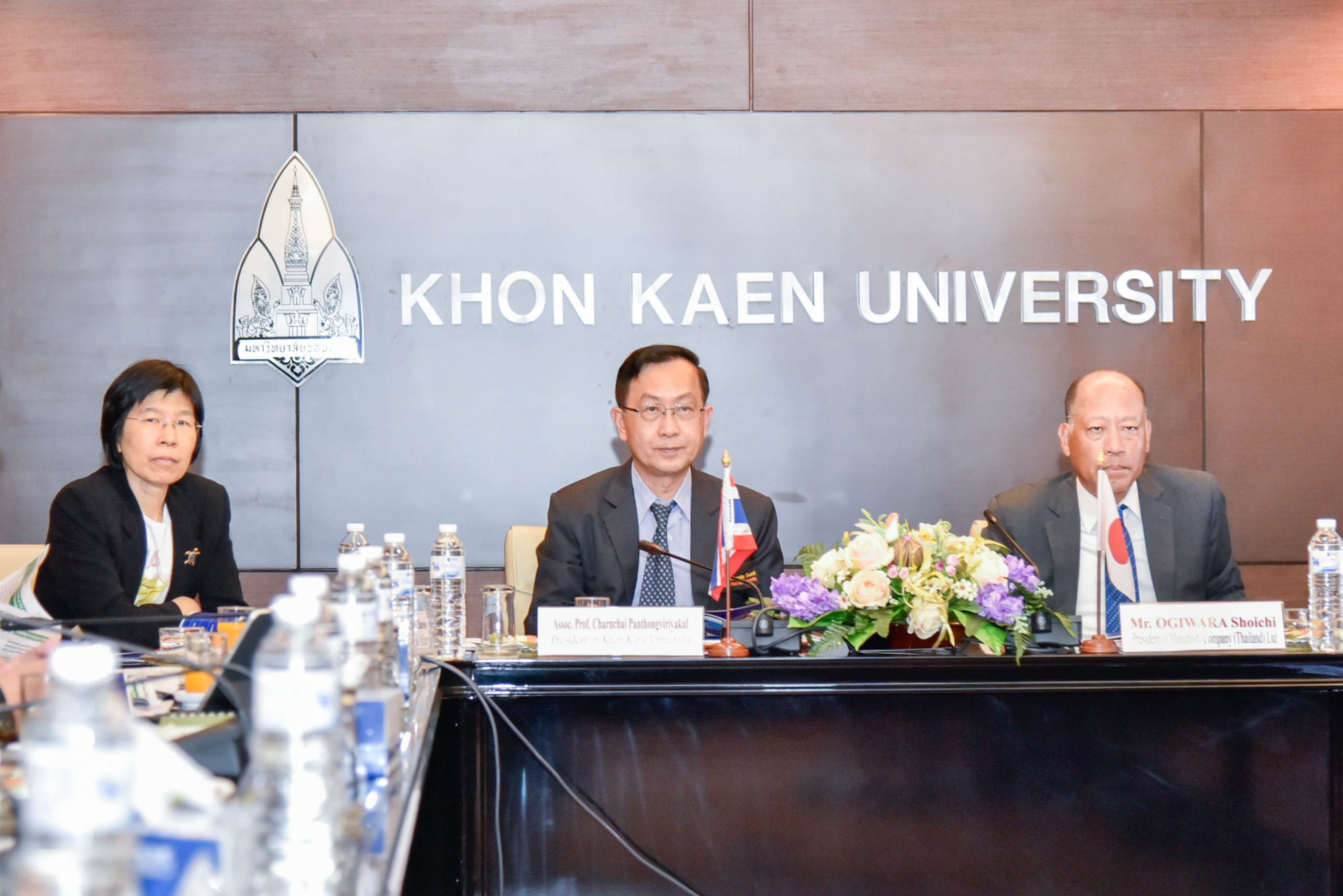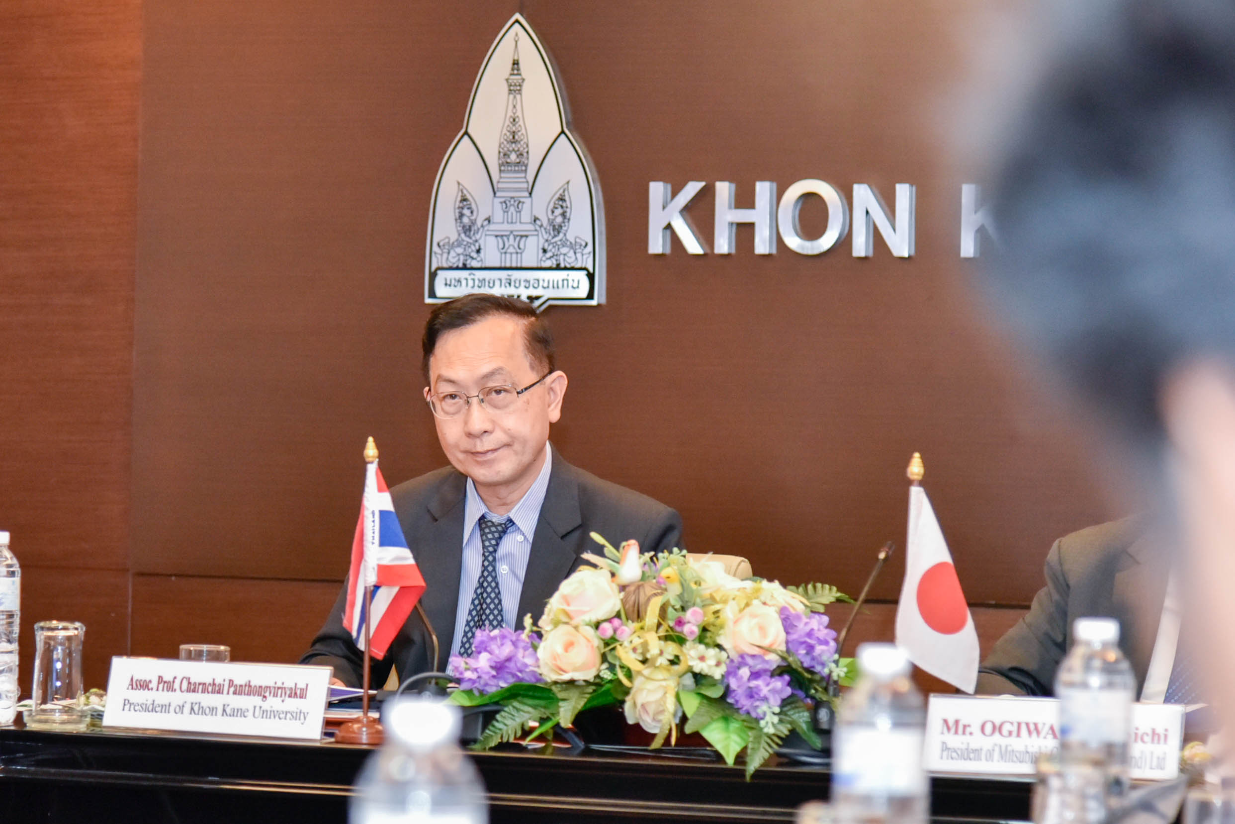 รศ.นพ.ชาญชัย พานทองวิริยะกุล อธิการบดี มหาวิทยาลัยขอนแก่น กล่าวถึงความรู้สึก ในโอกาสการต้อนรับคณะผู้แทนจาก Mitsubishi Company (Thailand) Ltd. โดยมหาวิทยาลัยขอนแก่นนั้น เป็นสถานการศึกษาที่เป็นศูนย์กลางทางด้านวิชาการและการวิจัยชั้นเลิศ โดยมีความร่วมมือกับสถาบันการศึกษาชั้นนำต่าง ๆ จากทั่วโลก โดยเฉพาะยิ่งสถาบันการศึกษาจากประเทศญี่ปุ่น และได้มีการแลกเปลี่ยนนักศึกษา รวมถึงบุคลากรร่วมกันมาอย่างยาวนาน นอกจากนี้ ยังมีการมอบทุนการศึกษาให้แก่ นักศึกษามหาวิทยาลัยขอนแก่น จากหน่วยงานต่าง ๆ จากประเทศญี่ปุ่น เช่น ทุน Fujimoto Foundation Japan International Cooperation Foundation (JICF), SMBC Global Foundation Scholarship Program, and Japanese Chamber of Commerce (JCC) เป็นต้น ซึ่งในปัจจุบัน มหาวิทยาลัยขอนแก่น ได้มีการลงนามความร่วมมือทางวิชาการกับสถาบันการศึกษาในประเทศญีปุ่นไปแล้วมากกว่า 90 ฉบับ โดยมหาวิทยาลัยขอนแก่น ยังส่งเสริมนวัตกรรมต่าง ๆ มากมาย อาทิ เช่น โรงงานแบตเตอรี่ลิเทียมไอออน เพื่อเป้นต้นแบบในการพัฒนาพลังงานสะอาดอย่างยั่งยืน ดังนั้น นับเป็นโอกาสอันดี ที่หน่วยงานทั้งสองจะได้มีการพัฒนาความร่วมมือต่อไป