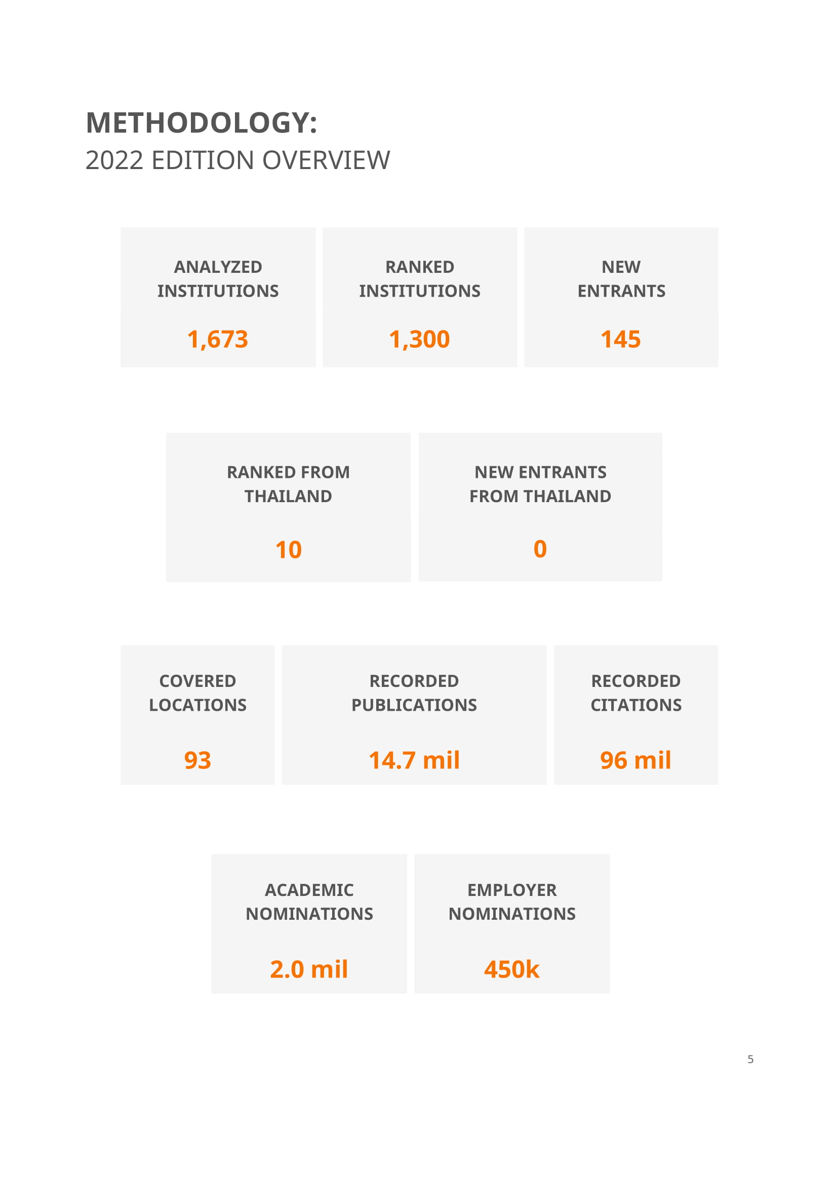 ผศ.นพ.ธรา ธรรมโรจน์ รองอธิการบดีฝ่ายบริหารมหาวิทยาลัยขอนแก่น เปิดเผยเกี่ยวกับการครองอันดับมหาวิทยาลัยแนวหน้าของประเทศครั้งนี้ว่า ในปี 2022 นี้มีสถาบันอุดมศึกษาเข้าร่วมการจัดอันดับ QS World University Rankings กว่า 1,673 แห่งจากทั่วโลก เพิ่มขึ้นจากปีที่แล้วถึง 145 แห่ง มีมหาวิทยาลัยที่ถูกจัดอันดับเป็น World rankings ประมาณ 1,300 มหาวิทยาลัยจากทั่วโลก ซึ่งมหาวิทยาลัยขอนแก่น อยู่ในอันดับ 801-1,000 ของโลก เป็นอันดับที่ 5 ของมหาวิทยาลัยไทย