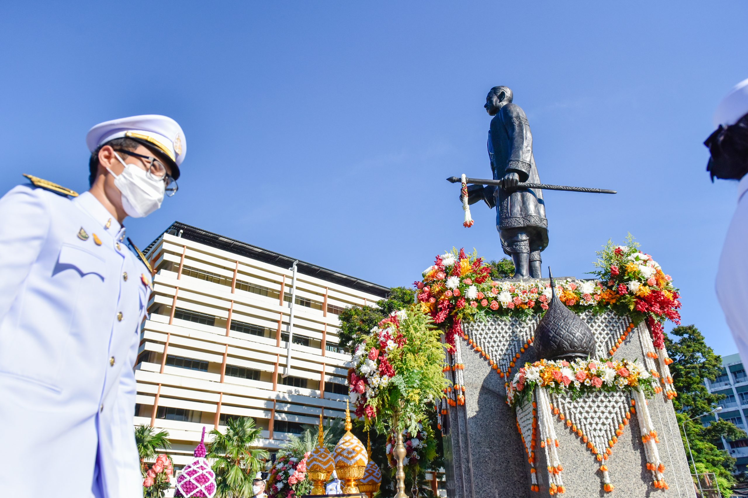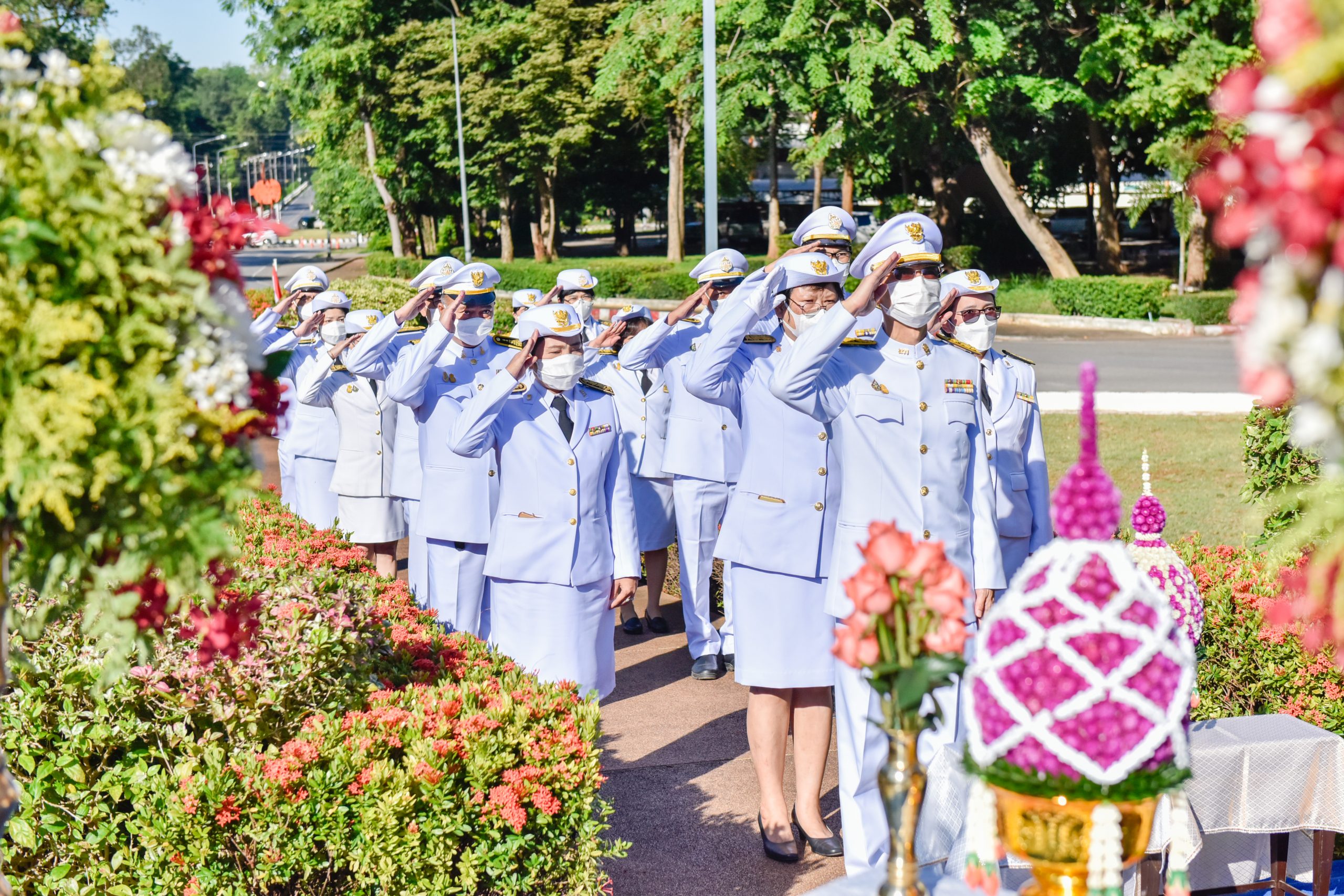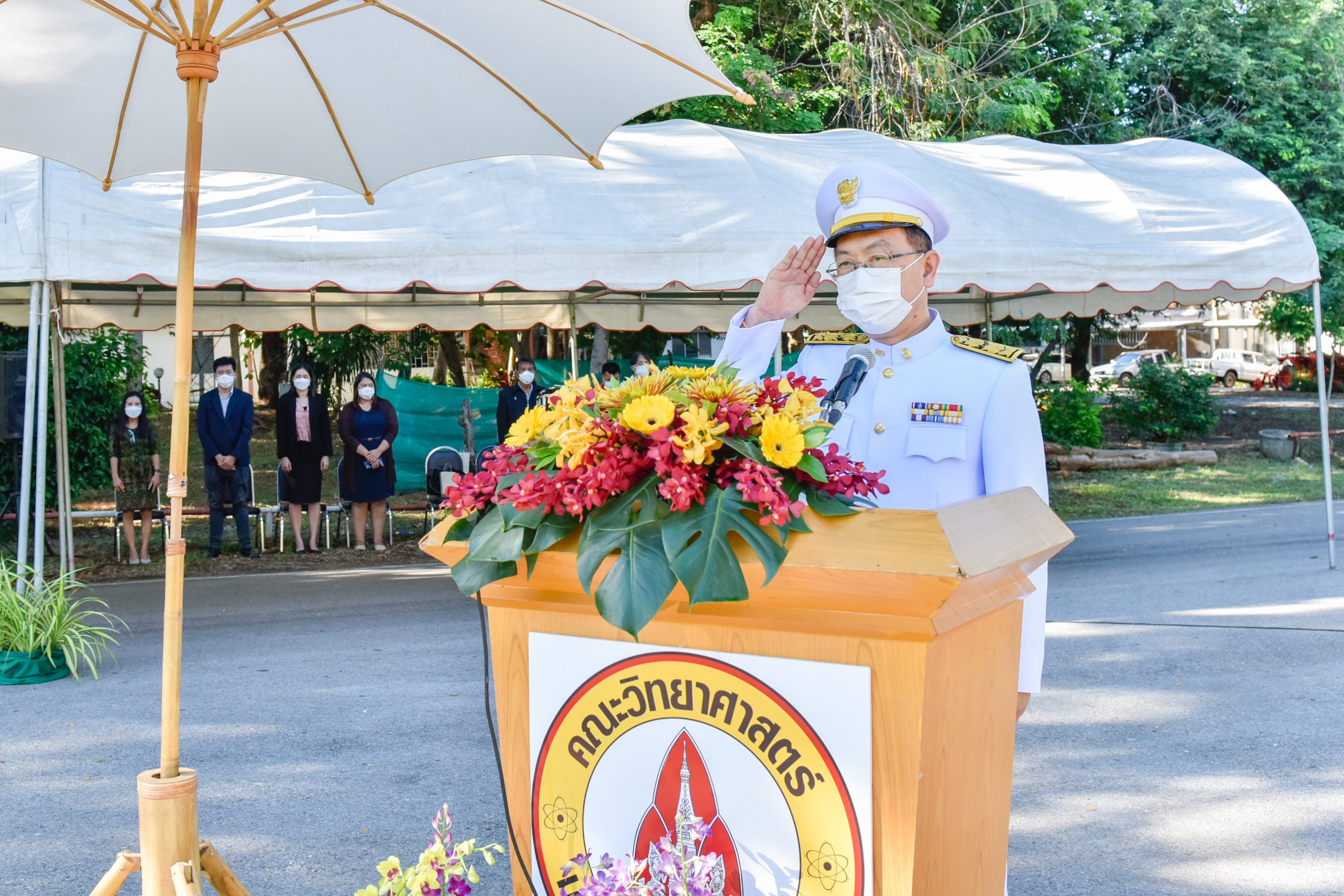 2) กำหนดให้ผู้เข้าร่วมพิธีทุกคน สวมหน้ากากอนามัยตลอดเวลาของการร่วมพิธี (หน้ากากอนามัยสีขาว)