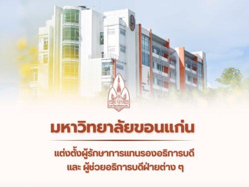 มหาวิทยาลัยขอนแก่น แต่งตั้งบุคคลเป็นผู้รักษาการแทนรองอธิการบดี และ ผู้ช่วยอธิการบดีฝ่ายต่าง ๆ 18/06/2024 15:10 น.