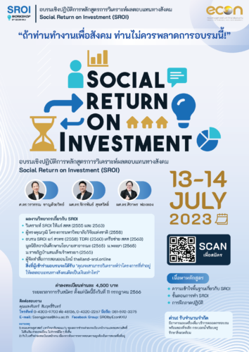 “Workshop หลักสูตรการวิเคราะห์ผลตอบแทนทางสังคม: Social Return on Investment (SROI)” 19/06/2023 20:19 น.
