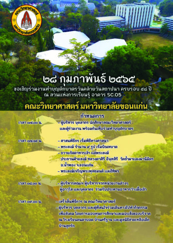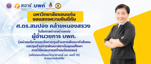 คณะวิทยาศาสตร์ มหาวิทยาลัยขอนแก่น ขอแสดงความยินดีกับ ศ.ดร.สมปอง คล้ายหนองสรวง ผู้อำนวยการ บพค. 02/03/2022 14:44 น.