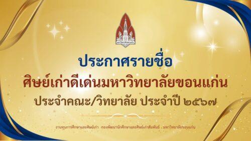 ประกาศผลการคัดเลือกศิษย์เก่าดีเด่น มหาวิทยาลัยขอนแก่น ประจำคณะ/วิทยาลัย ประจำปี ๒๕๖๗ 07/08/2024 13:02 น.