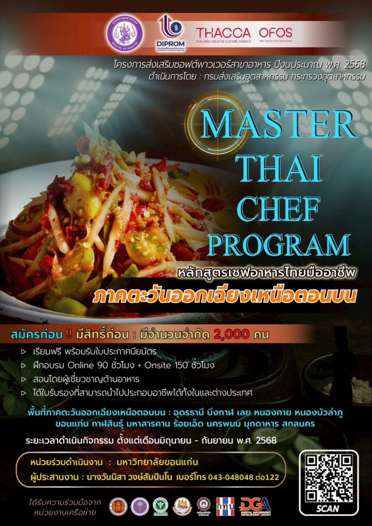 ฝันอยากเป็นเชฟมือโปร? โอกาสมาถึงแล้ว! “Master Thai Chef Program” หลักสูตรเชฟอาหารไทยมืออาชีพ ภาคตะวันออกเฉียงเหนือตอนบน