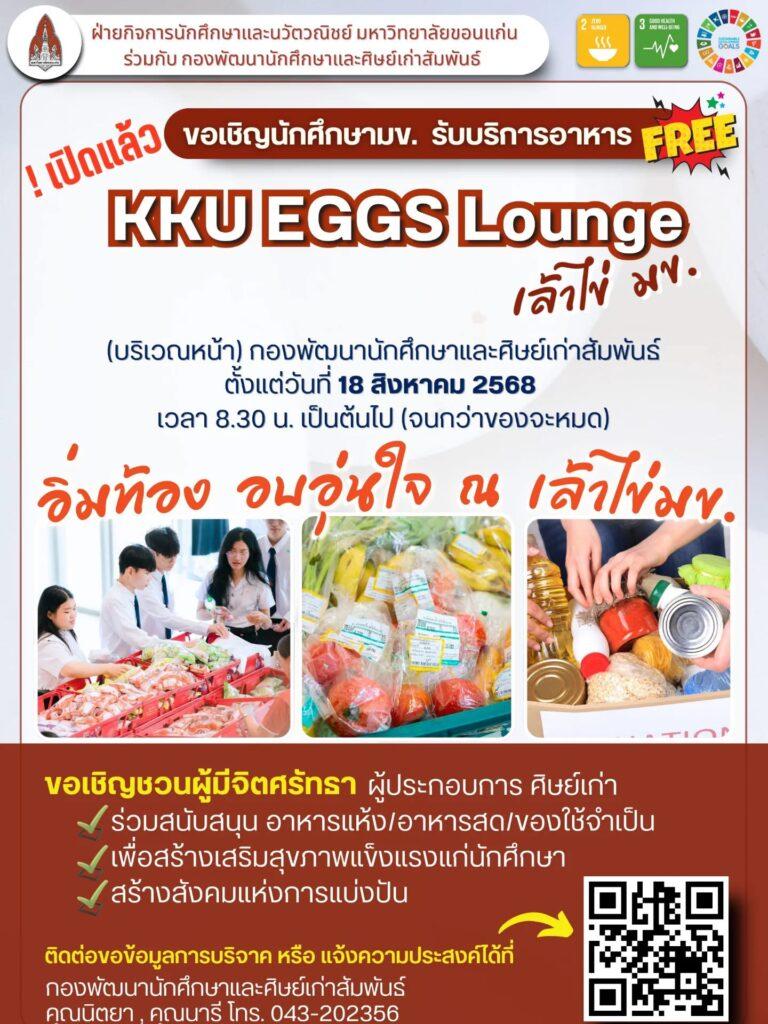 ส.ค. 18 2025 ♥️ !! เปิดแล้ว🥚KKU EGGS Lounge : อิ่มท้อง อบอุ่นใจ ณ เล้าไข่ มข. 😋 ขอเชิญชวนนักศึกษา มข. รับบริการอาหาร ฟรี!✨ SDG 2: Zero Hunger ยุติความหิวและพัฒนาเกษตรยั่งยืน, ข่าวประชาสัมพันธ์และบริการ / By chumporn ♥️ !! เปิดแล้ว🥚KKU EGGS Lounge : อิ่มท้อง อบอุ่นใจ ณ เล้าไข่ […] ♥️ !! เปิดแล้ว🥚KKU EGGS Lounge : อิ่มท้อง อบอุ่นใจ ณ เล้าไข่ มข. 😋 ขอเชิญชวนนักศึกษา มข. รับบริการอาหาร ฟรี!✨ Read More »