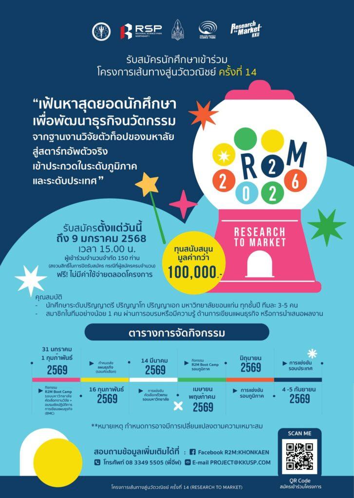 เมื่อวันศุกร์ที่ 5 ธันวาคม 2568 มหาวิทยาลัยขอนแก่น โดยฝ่ายวิจ