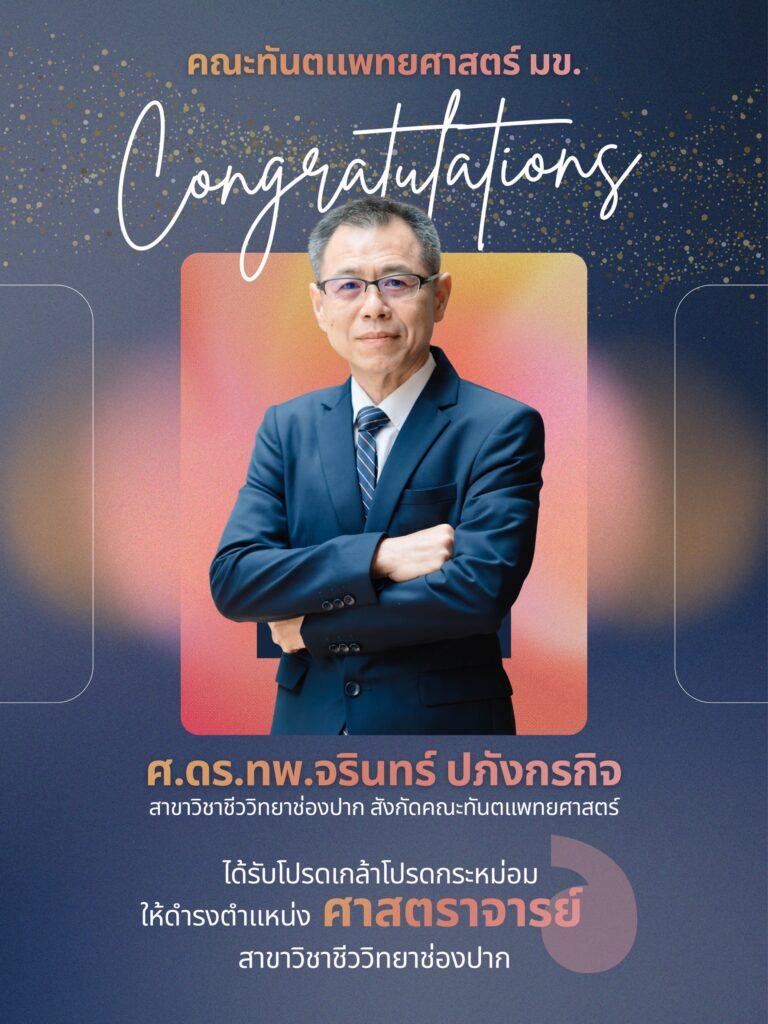พ.ย. 14 2025 ขอแสดงความยินดีกับ รศ.ดร.ทพ.จรินทร์ ปภังกรกิจ ได้รับโปรดเกล้าโปรดกระหม่อม แต่งตั้งให้ดำรงตำแหน่งเป็น “ศาสตราจารย์” ข่าวประชาสัมพันธ์และบริการ / By หญิง โพธิสุวรรณ คณะทันตแพทยศาสตร์ มหาวิทยาลัยขอนแก่น ขอแสดงความยินดีกับ รศ.ดร ขอแสดงความยินดีกับ รศ.ดร.ทพ.จรินทร์ ปภังกรกิจ ได้รับโปรดเกล้าโปรดกระหม่อม แต่งตั้งให้ดำรงตำแหน่งเป็น “ศาสตราจารย์” Read More »