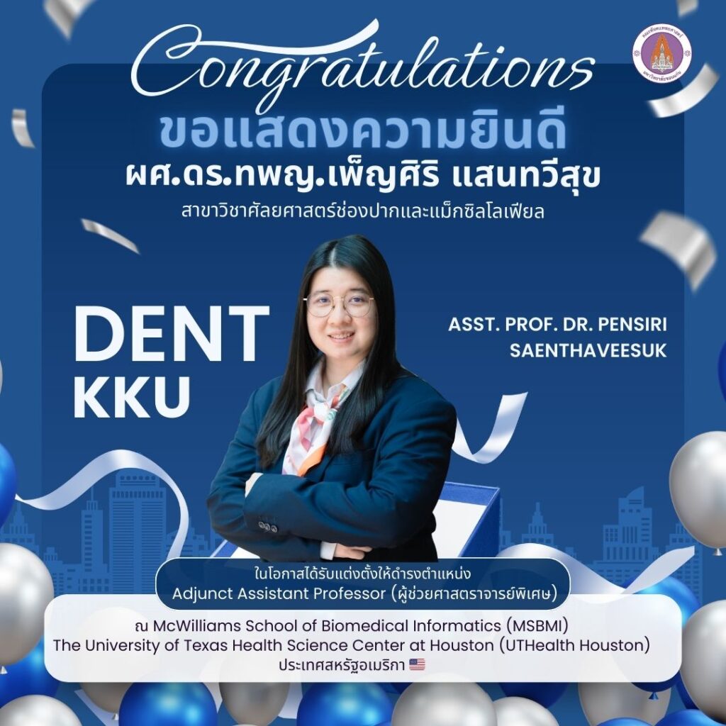 คณะทันตแพทยศาสตร์ มหาวิทยาลัยขอนแก่น ขอแสดงความยินดีกับ ผศ.ดร