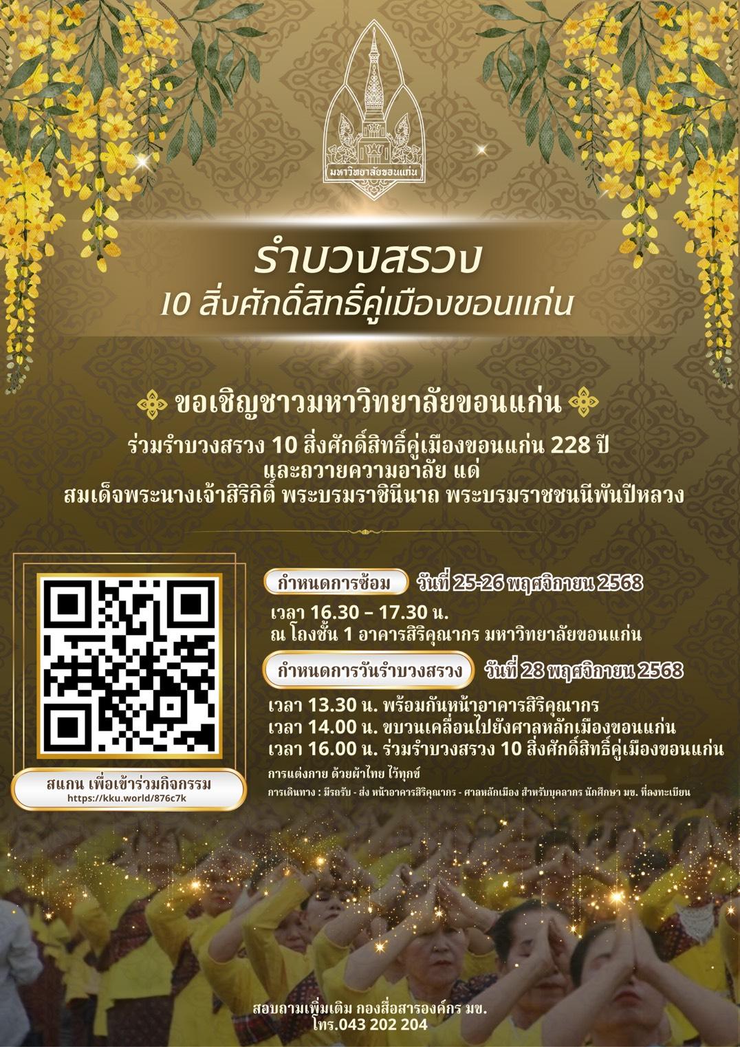 มหาวิทยาลัยขอนแก่น ร่วมรำบวงสรวง “10 สิ่งศักดิ์สิทธิ์คู่เมืองขอนแก่น 228 ปี” และถวายความอาลัยแด่ สมเด็จพระนางเจ้าสิริกิติ์ พระบรมราชินีนาถ พระบรมราชชนนีพันปีหลวง