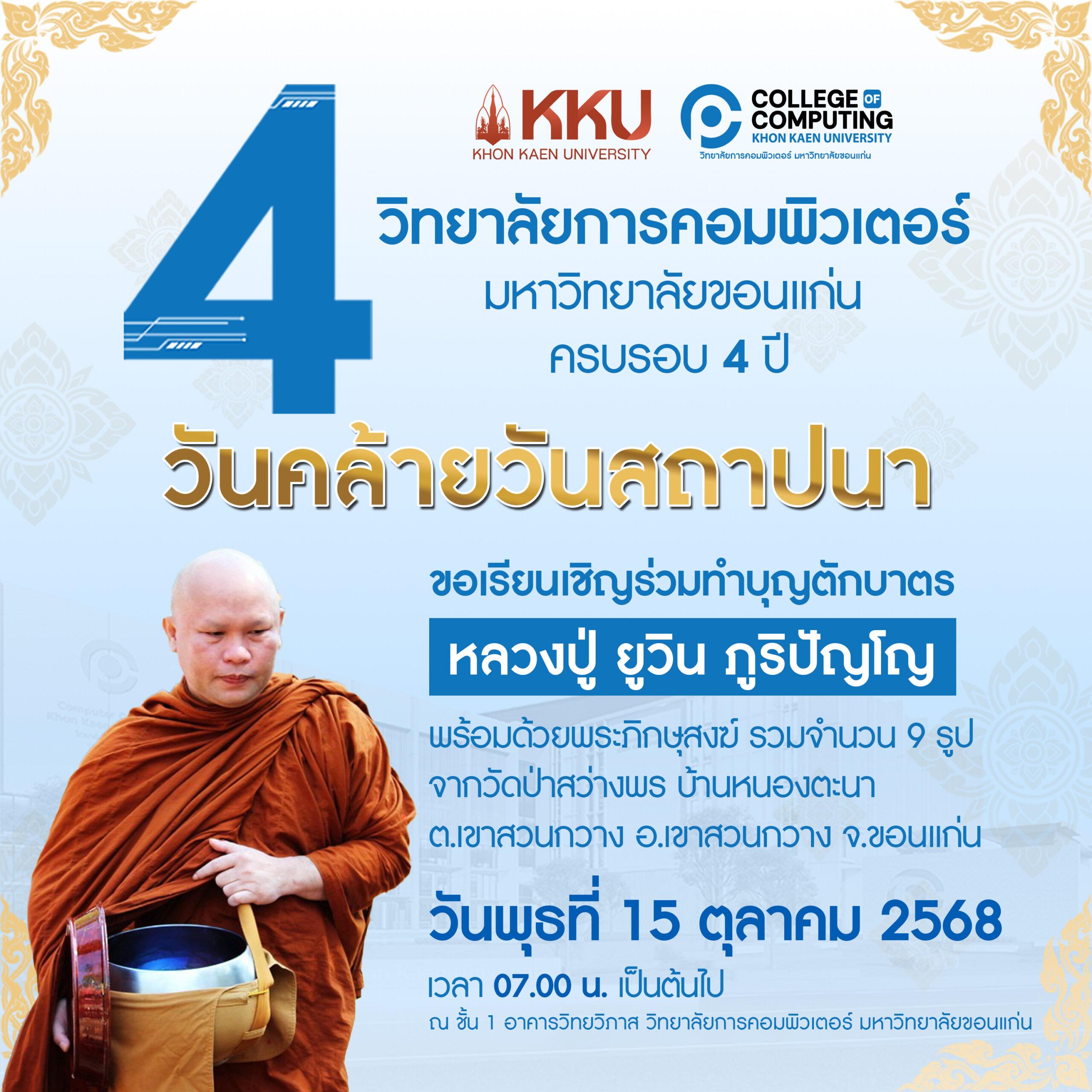 ครบรอบ 4 ปี วันคล้ายวันสถาปนา วิทยาลัยการคอมพิวเตอร์ ทำบุญตักบาตร หลวงปู่ ยูวิน ภูริปัญโญ และพระภิกษุสงฆ์ รวมจำนวน 9 รูป