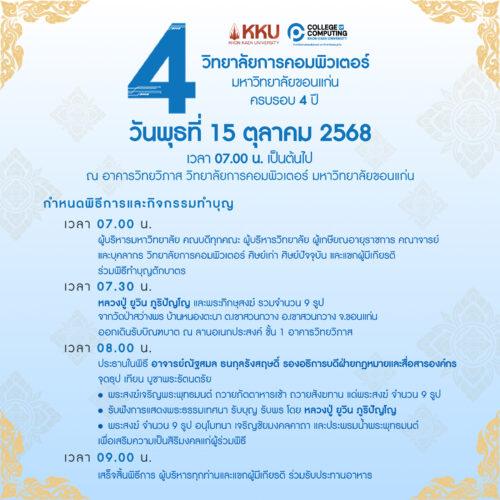 ครบรอบ 4 ปี วันคล้ายวันสถาปนา วิทยาลัยการคอมพิวเตอร์ ทำบุญตักบาตร หลวงปู่ ยูวิน ภูริปัญโญ และพระภิกษุสงฆ์ รวมจำนวน 9 รูป