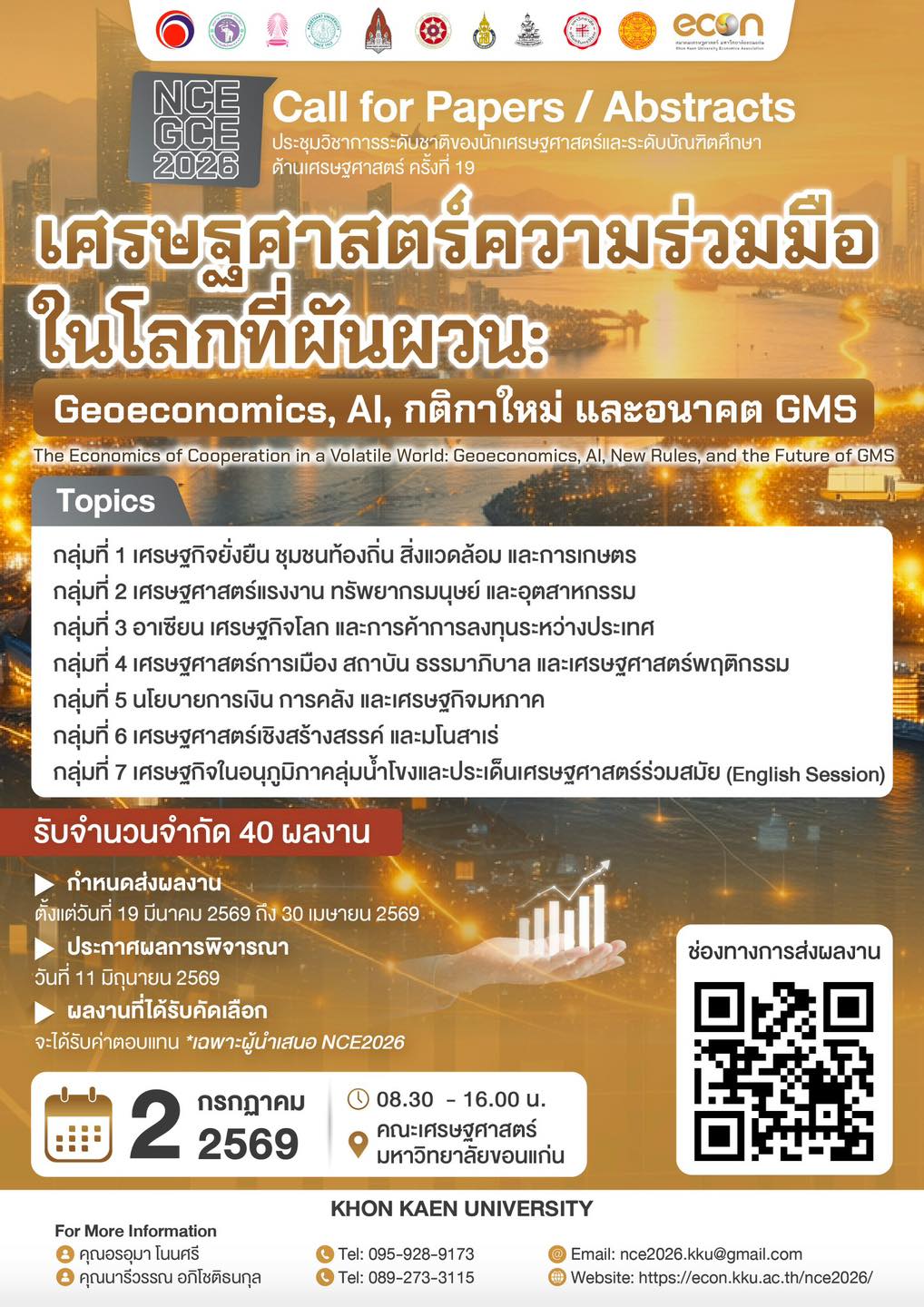 โครงการเศรษฐทัศน์ ประจำปี 2569 ควบการประชุม NCE เปิดรับบทความจากนิสิต-นักศึกษาทั่วประเทศ