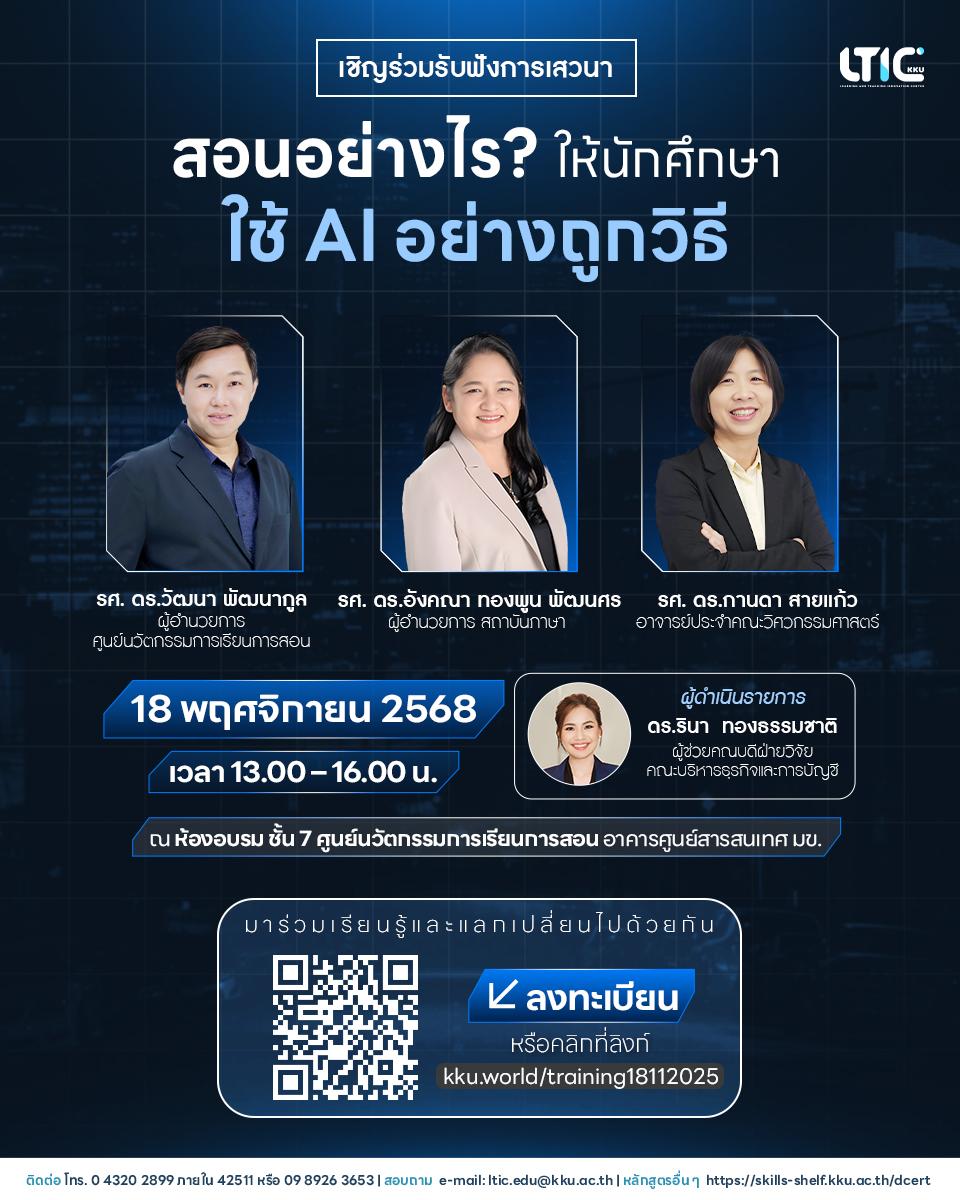 อาคารศูนย์สารสนเทศ มหาวิทยาลัยขอนแก่น FRGF+JFX, ถนน กัลปพฤกษ์, Nai Mueang, Mueang Khon Kaen District, Khon Kaen 40000, Mueang Khon Kaen District, KhonKaen, Thailandเสวนา “สอนอย่างไร ให้นักศึกษาใช้ AI อย่างถูกวิธี” ในยุคที่นั […]